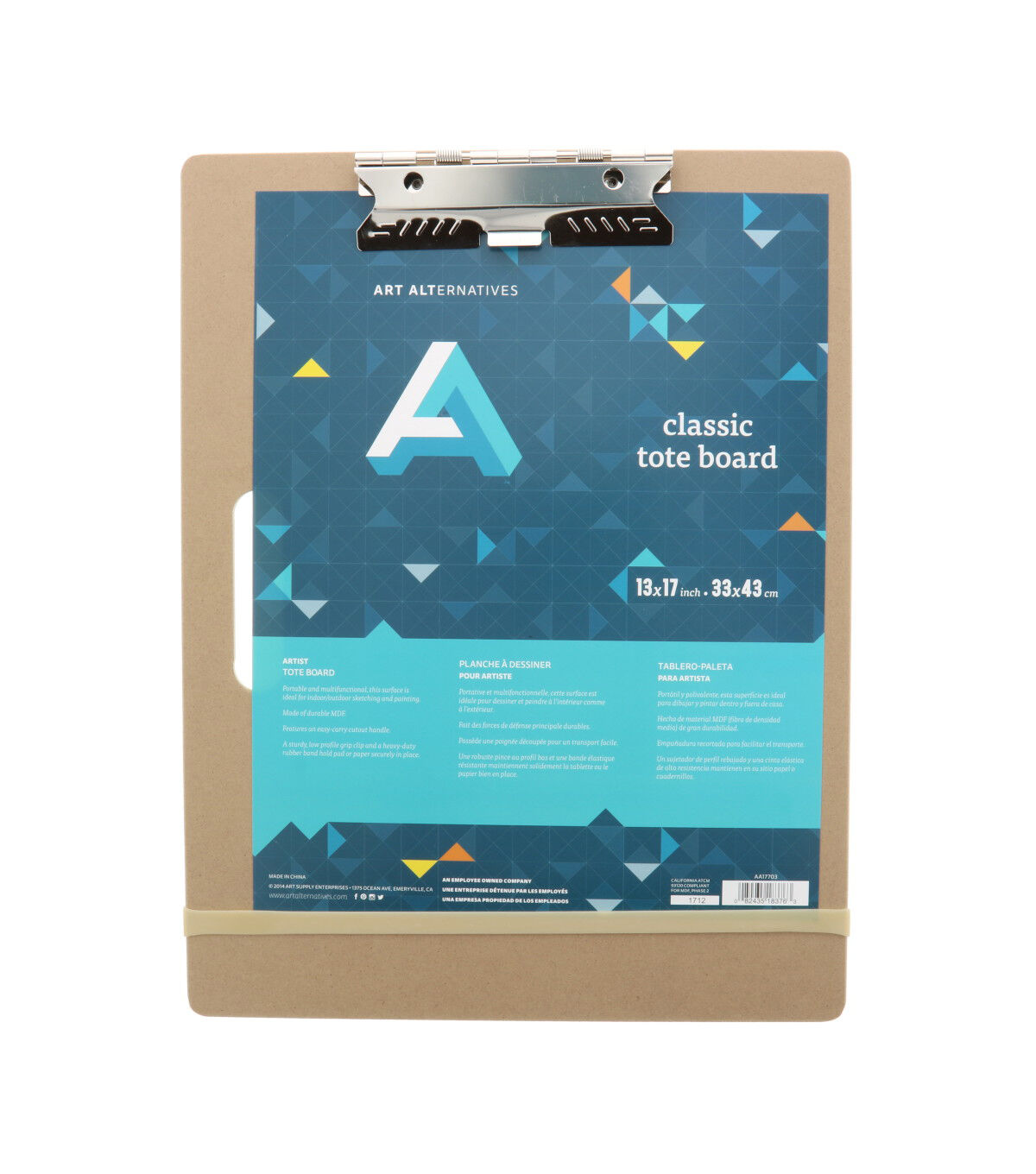 ART ALTERNATIVES-Artist Sketchboard. This is portable; and multifunctional; this surface is ideal for indoor and outdoor sketching and painting. It is made of durable MDF; features an easy- carry cutout handle; has a sturdy low profile grip clip that holds pad or paper securely in place; and has a heavy duty rubber band that keeps pad or paper in place. This package contains one 13x17 inch sketchboard. Imported.