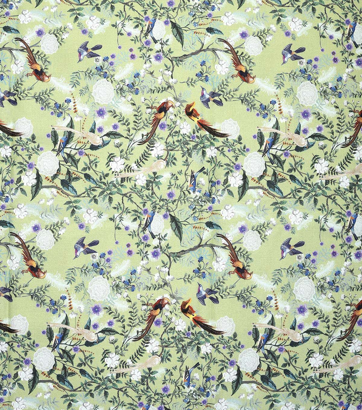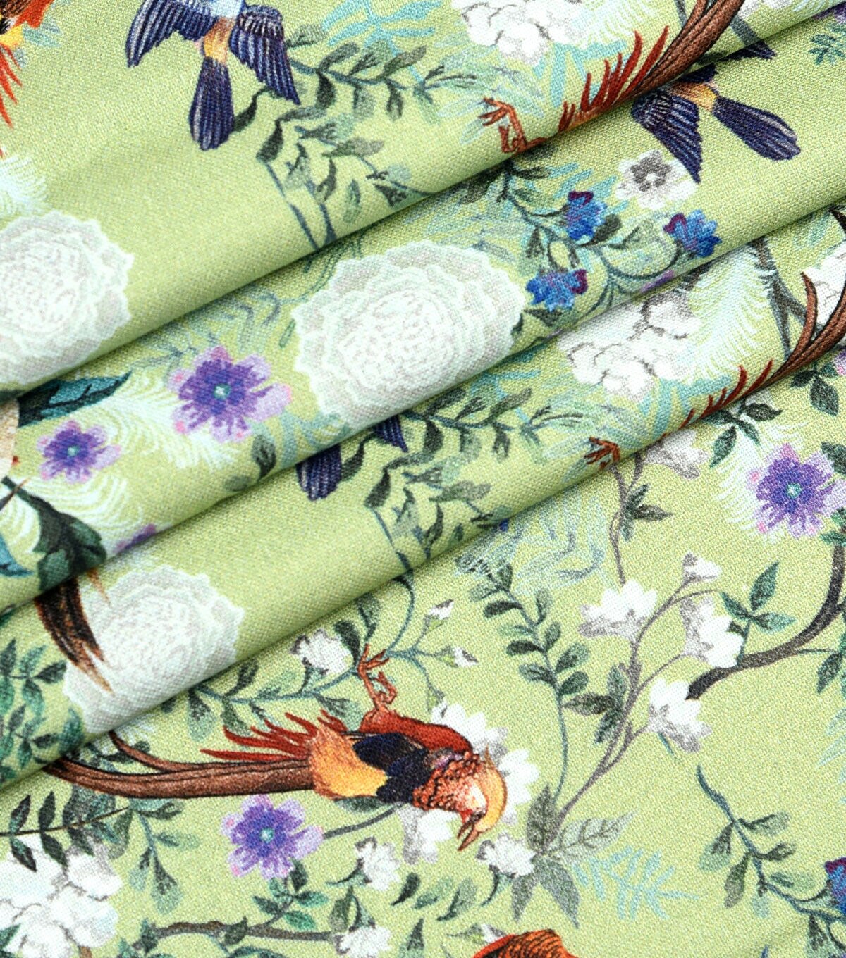 • Asian Birds In Floral Green Premium Cotton Fabric