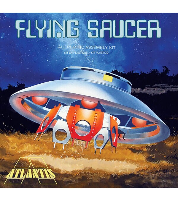 1/72 Scale. This kit is molded in silver and includes a Clear dome top and 5 clear parts underneath. This kit has not had the clear dome included in many years. The dome and other parts are also included molded in silver as well. The kit features new box art and for the first time is issued in the classic Aurora Square box. 8 1/4 X 8 1/4 X 3 1/4. Features detailed interior with crew figures. Skill level 2. Saucer has a 7 inch diameter.