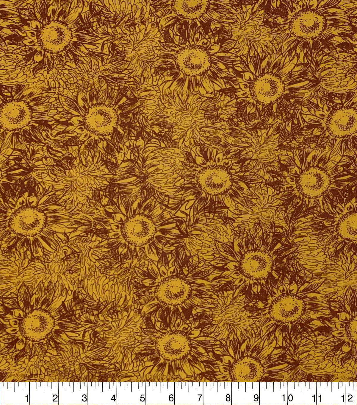 Autumn Sketched Sunflowers Quilt Cotton Fabric by Quilter's Showcase
