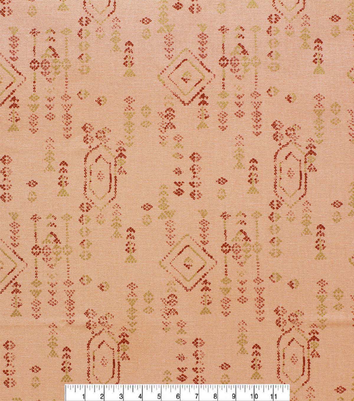 Don't settle for ordinary home decor. Add a touch of sophistication with Aztec Geometric on Pink Quilt Metallic Cotton Fabric by Keepsake Calico.