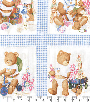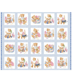 Adorable Baby Bears Patchwork on Blue Nursery Panel Cotton Fabric