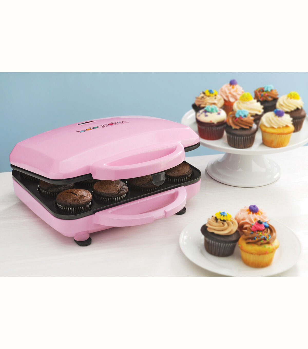 Bakes 12 standard sized Cupcakes. Features 1400 watts of power. Power and read lights. Convenient cord wrap. Non-skid feet. Latching handle.