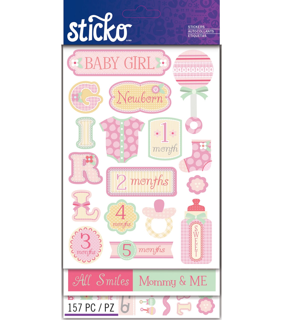 This Sticko - Baby Girl Flip Pack of stickers has everything you need for your craft or DIY project! Icons, phrases, alphabet and border stickers all coordinated and ready to go on cards, layouts, binders or just about anywhere.