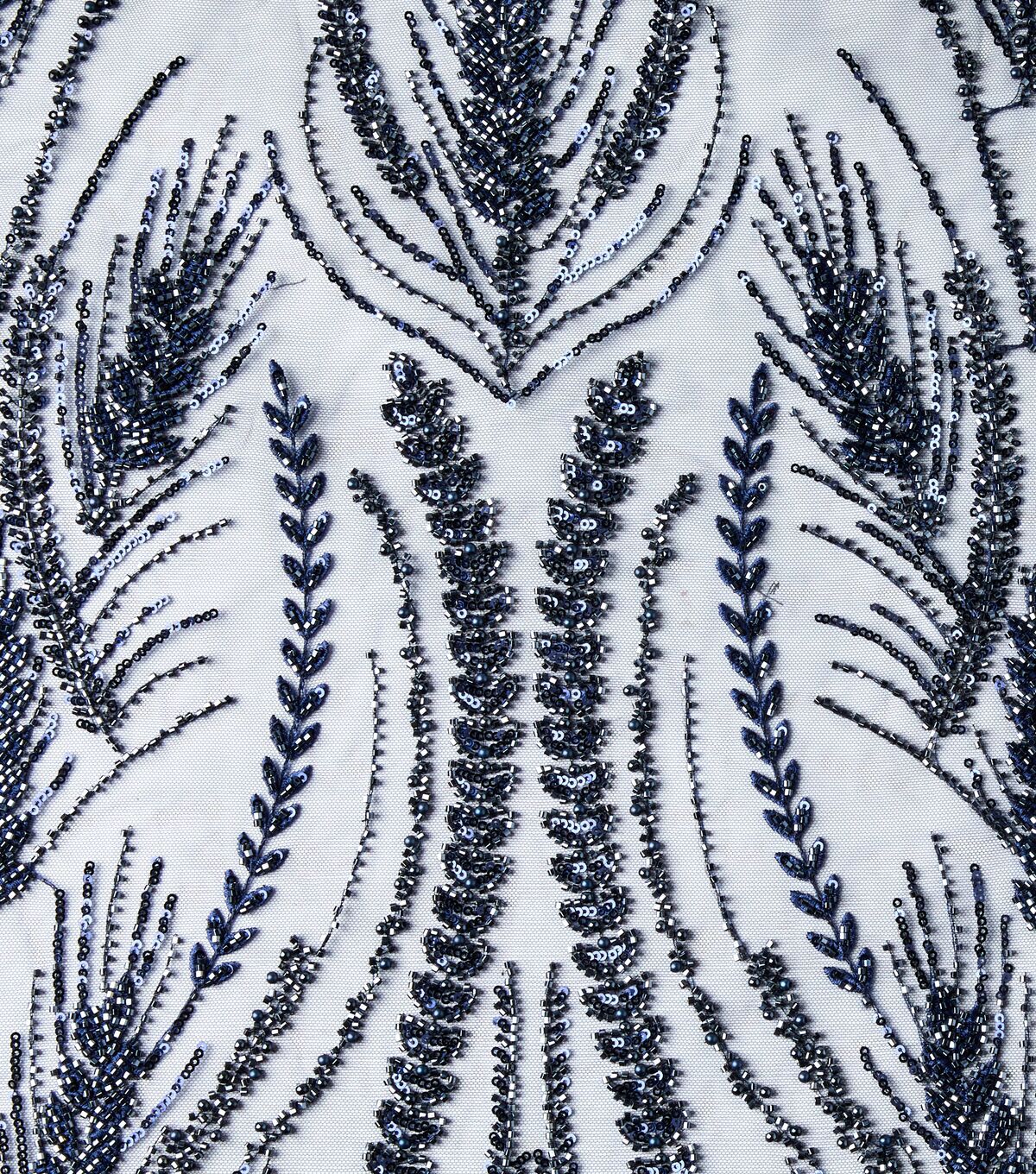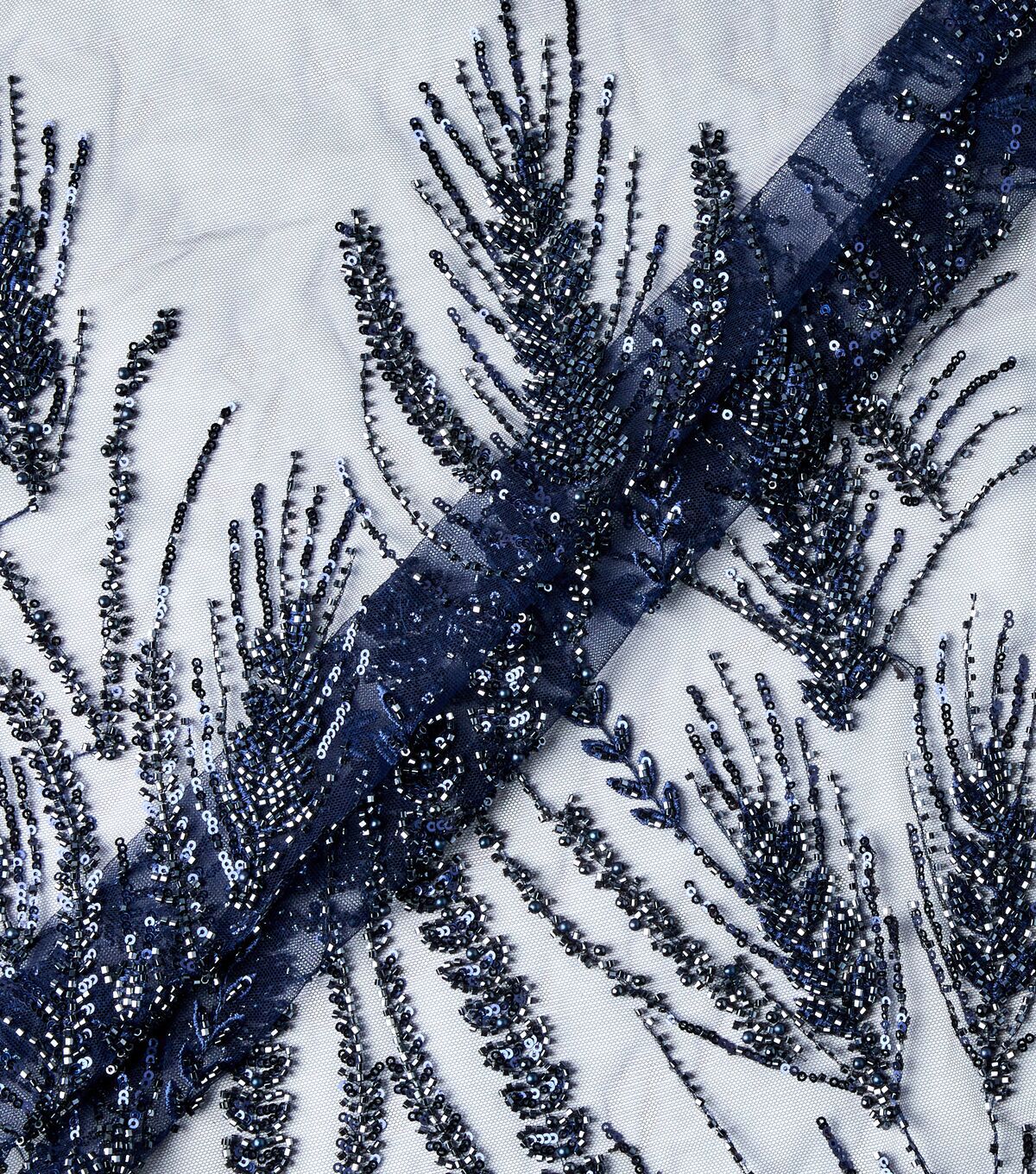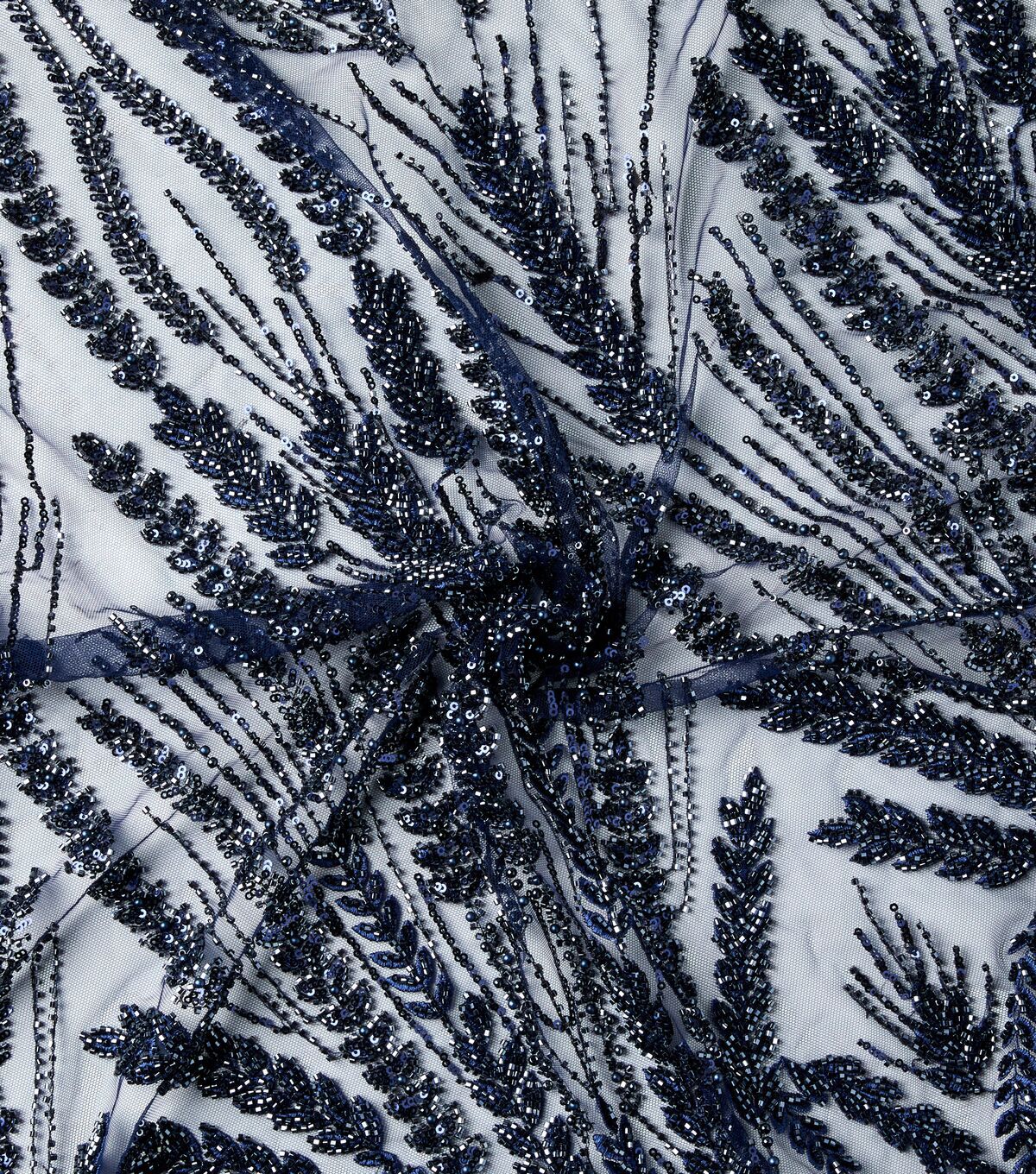 Get Glamorous with Badgley Mischka Navy Embroidered Beads & Sequins Mesh Fabric