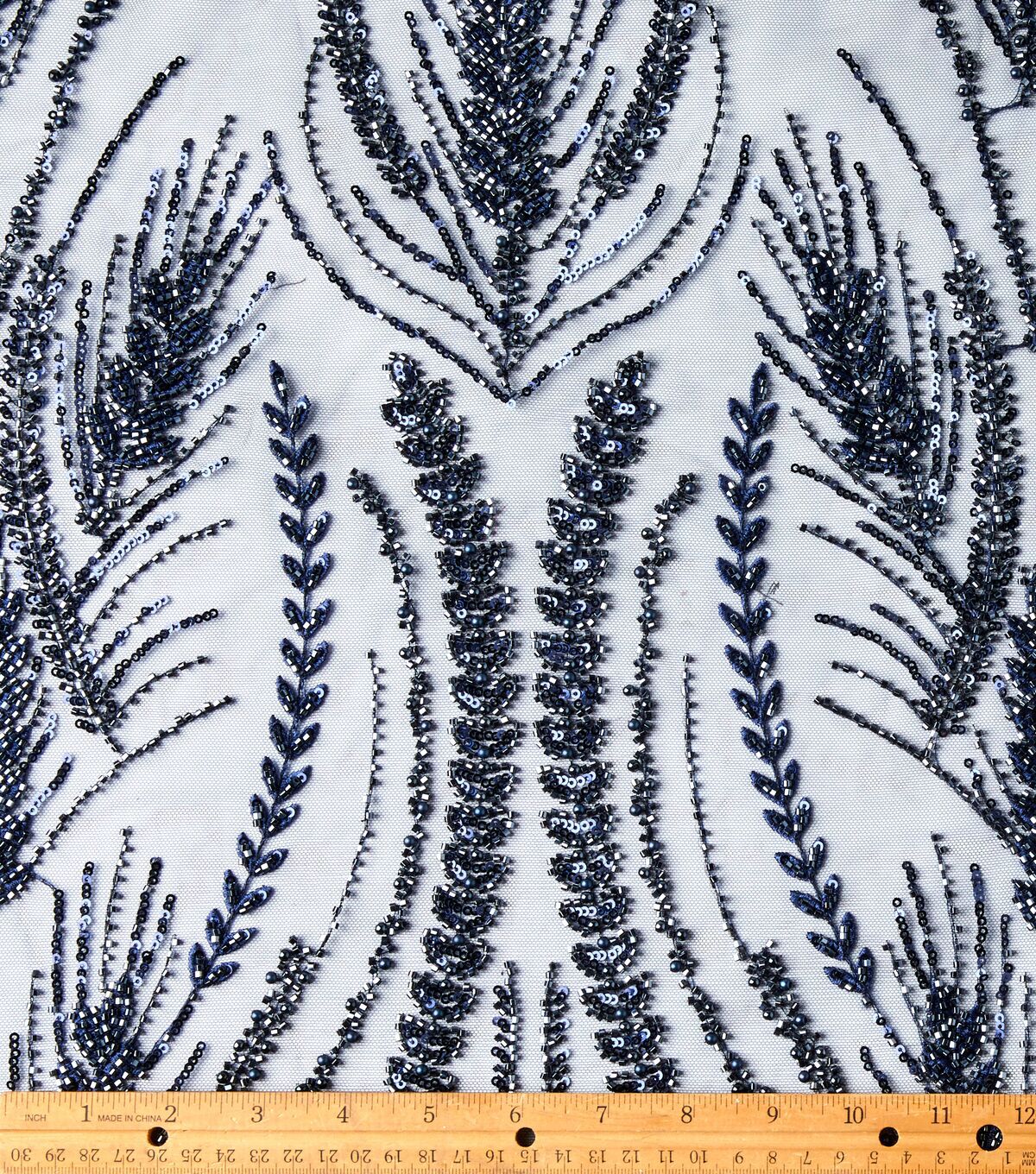 Elevate your fashion game with this stunning Badgley Mischka Navy Embroidered Beads & Sequins Mesh Fabric. The intricate embroidery, beads, and sequins on this fabric are sure to make you stand out from the crowd. Whether you're creating a show-stopping gown or a statement piece, this fabric is perfect for any occasion.