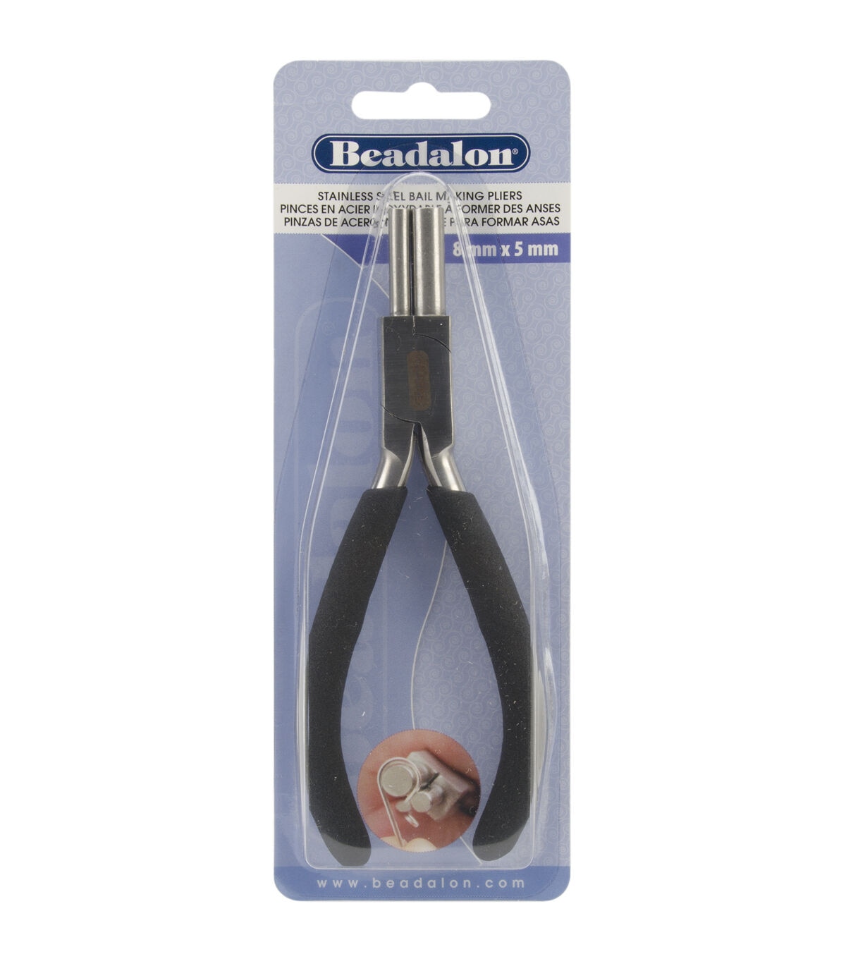 BEADALON-Bail Making Pliers. Creating handmade jewelry is an easier task when you use tools that are specifically designed for the job. Beadalon pliers are made using stainless steel and feature a double- leaf action design with a padded comfort grip. Available in a variety of styles to meet a variety of needs (all sold separately). This package contains one pair of Bail Making pliers. The tips are 1 inch long with diameters of 5- and 8mm. Imported.