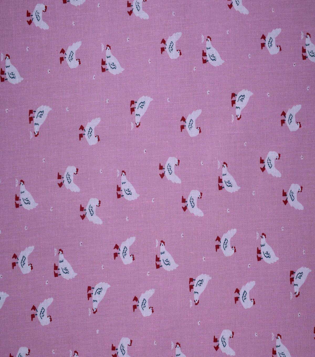 Adorable Barnyard Chickens on Pink Cotton Fabric by Quilter's Showcase
