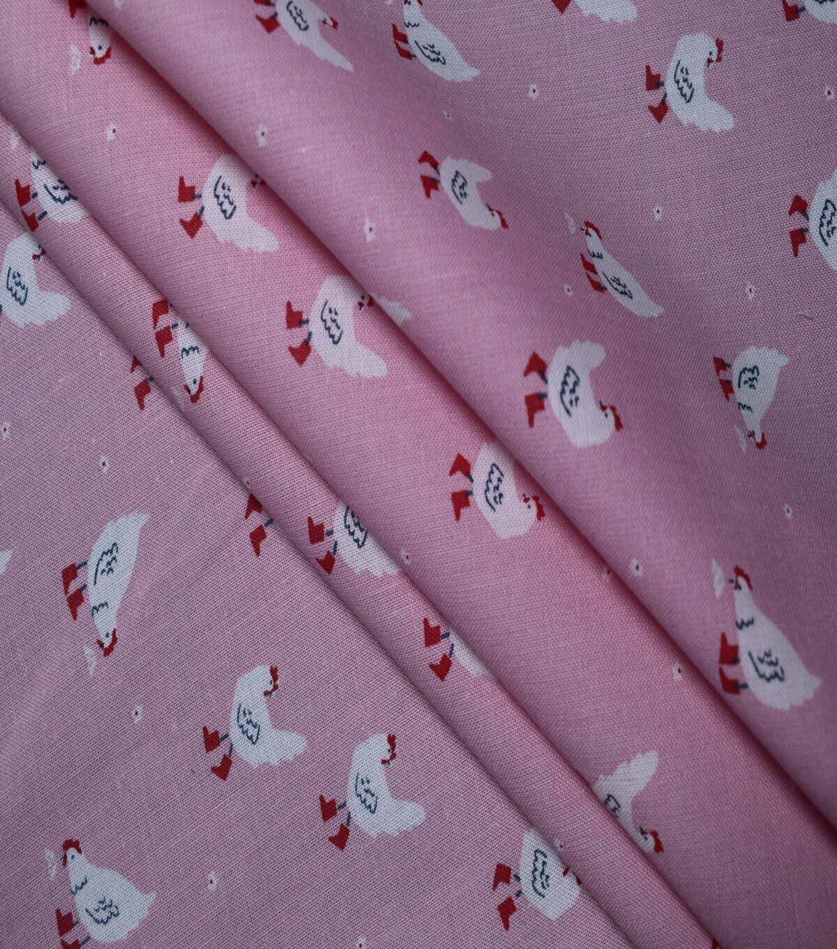 Bring a touch of country charm to your next quilting project with this delightful Barnyard Chickens on Pink Cotton Fabric by Quilter's Showcase. The playful print features a variety of chickens in different poses, set against a soft pink background. This 100% cotton fabric is perfect for quilting, crafting, and home decor projects.