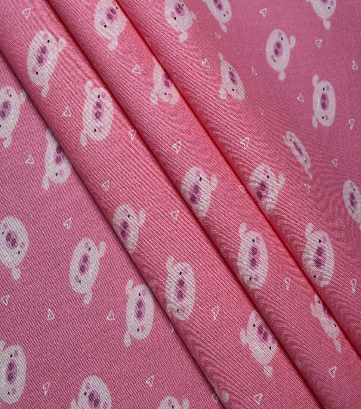 Adorable Barnyard Pigs on Pink Cotton Fabric by Quilter's Showcase