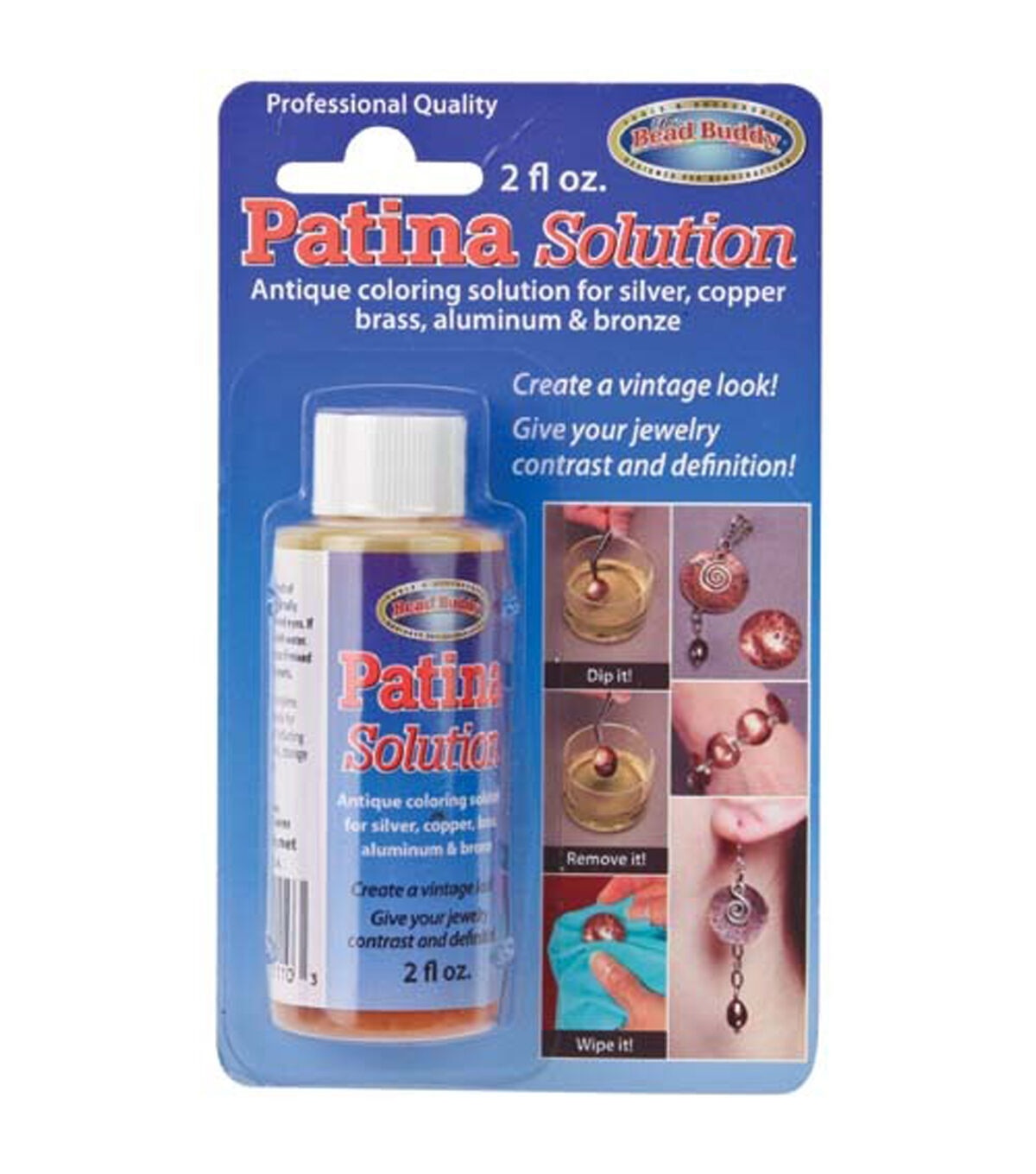 Use The Bead Buddy Patina Solution to lend a colored effect to your silver, copper, aluminum, brass and bronze jewelry pieces. This coloring solution is a water-based acidic solution ideal to lend a tinted effect to your elementary jewelry designs. It's easy to use and gives your jewelry a high contrast and definition.