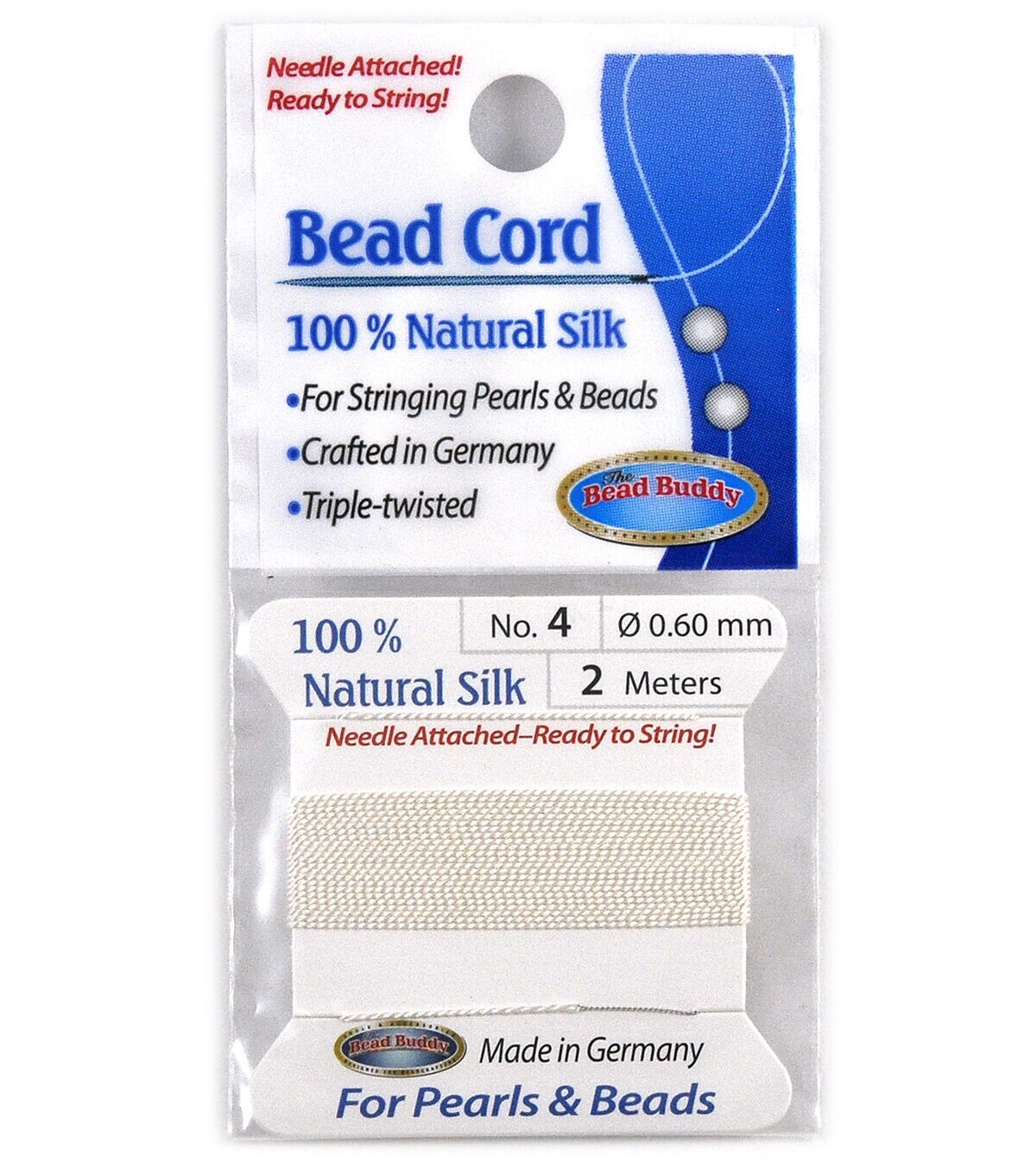 Enjoy creating your own jewelry designs with The Bead Buddy Silk Cord Thread with Needle-White. This bead cord is made of 100% silk for a plush look. You can use it to string together beads, pearls and charms to make necklaces and bracelets. Add it to your jewelry-making kit to craft a wide variety of stunning DIY jewelry designs.