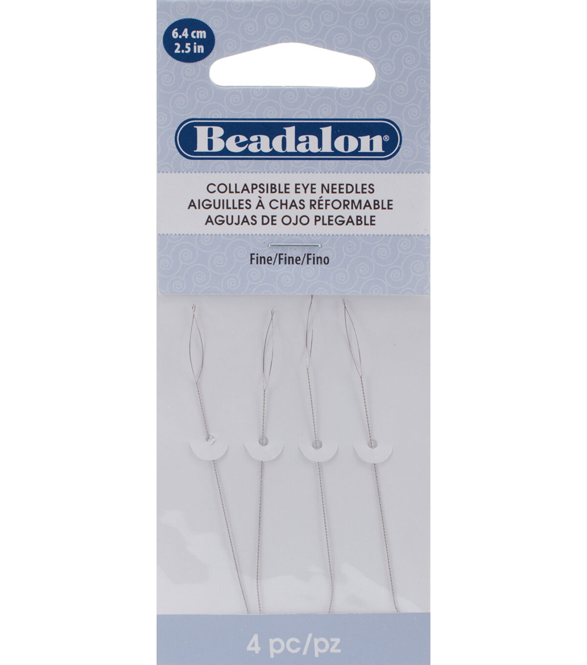 Flexible and easy to use, the Beadalon Fine Collapsible Eye Needles feature collapsible holes. They’re great for stringing beads, and feature large eyes that are easy to thread. The extra-spring wire is kink-resistant, and the eyes automatically collapse and instantly reshape when pulled through the bead. This pack contains four, 2.5-inch collapsible eye needles.