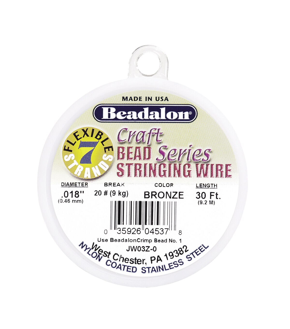 Beadalon is a very popular and well-recognized manufacturer of quality jewelry crafting products. This superb beading wire has 7 strands, is .018 inch in diameter and an ideal wire for creating a wide assortment of necklaces, bracelets and more. Flexible and easy to work with, too. Perfect for everything from tiny seed beads to standard size crystal, pearl, stone and metal beads. Bronze color.