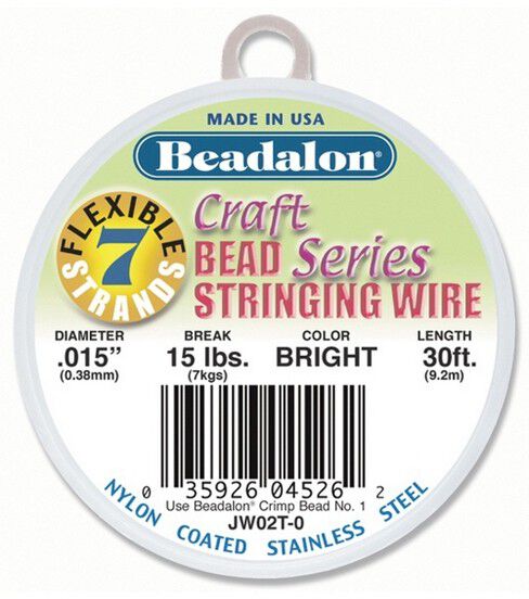 Beadalon wires are softer, more supple and stronger than any other bead stringing wires on the market. They combine the soft, silky feel of thread with the strength and abrasion resistance of stainless steel. Multiple starnds of incredibly strong fine stainless steel cable is nylon coated specially for bead stringing. The higher number of strands in the wire, the more flexible and kink resistant. For Austrain crystals, seed beads and fresh water pearls us .012'' and use .015''-.018'' for medium to heavy glass, metal, ceramic and fiber-optic beads.