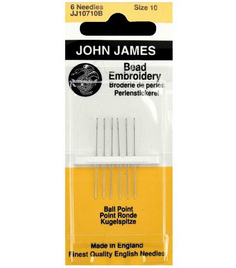The John James Bead Embroidery Tapestry Point Hand Needles are perfect for sewing sequins and beads onto fabrics. These tapestry needles are designed with round ends and will not pierce your fabric. You can also use them for stringing beads of various types. They are nickel and copper plated for tarnish prevention. This pack includes six ball point needles in size 10.