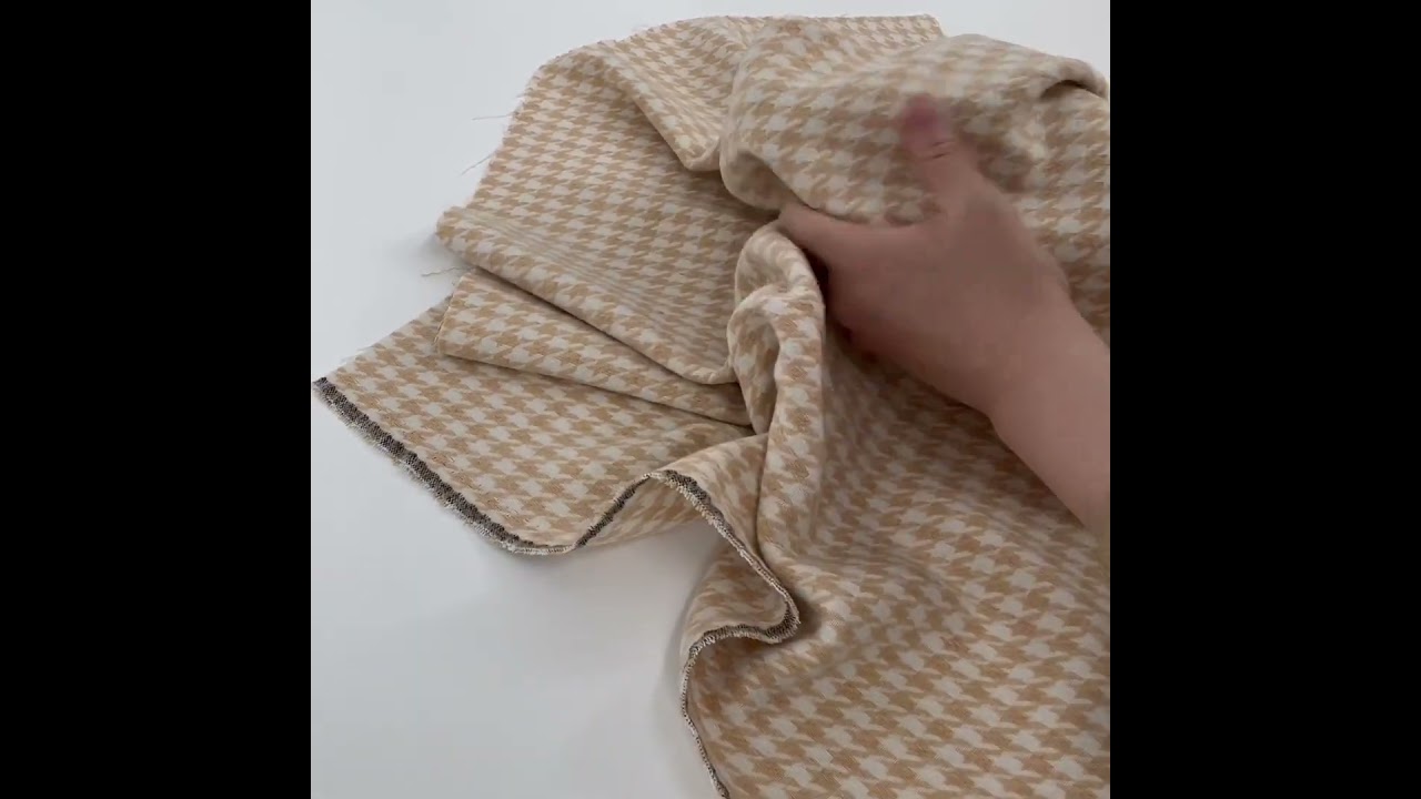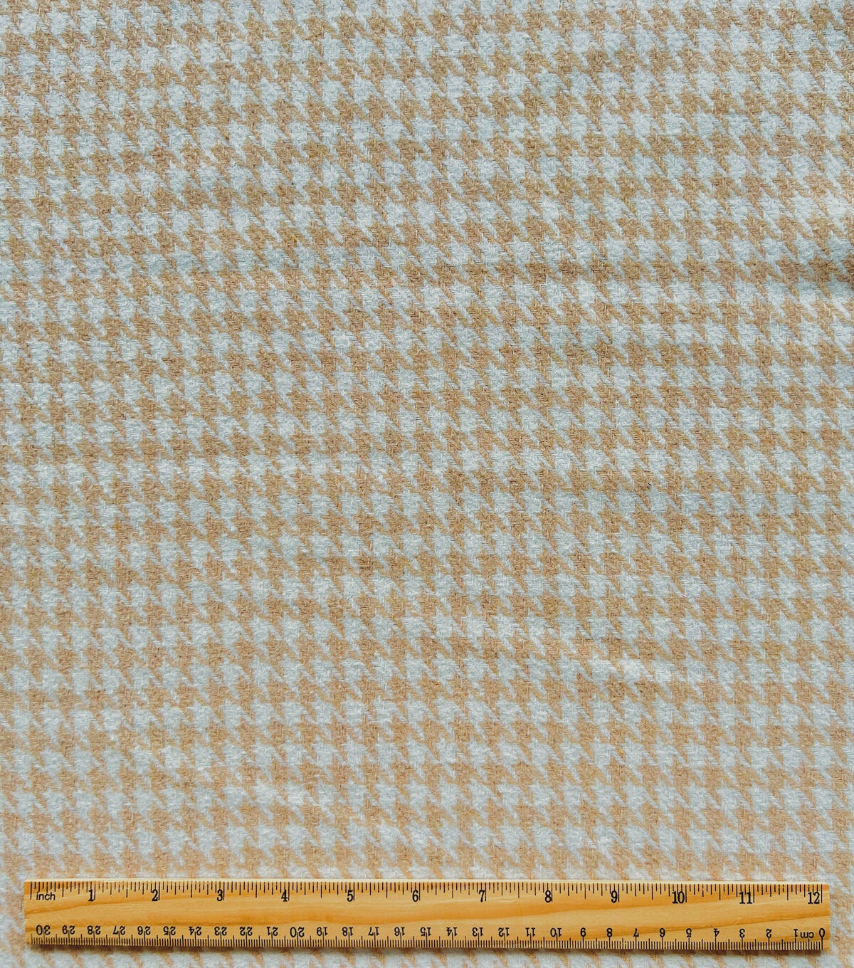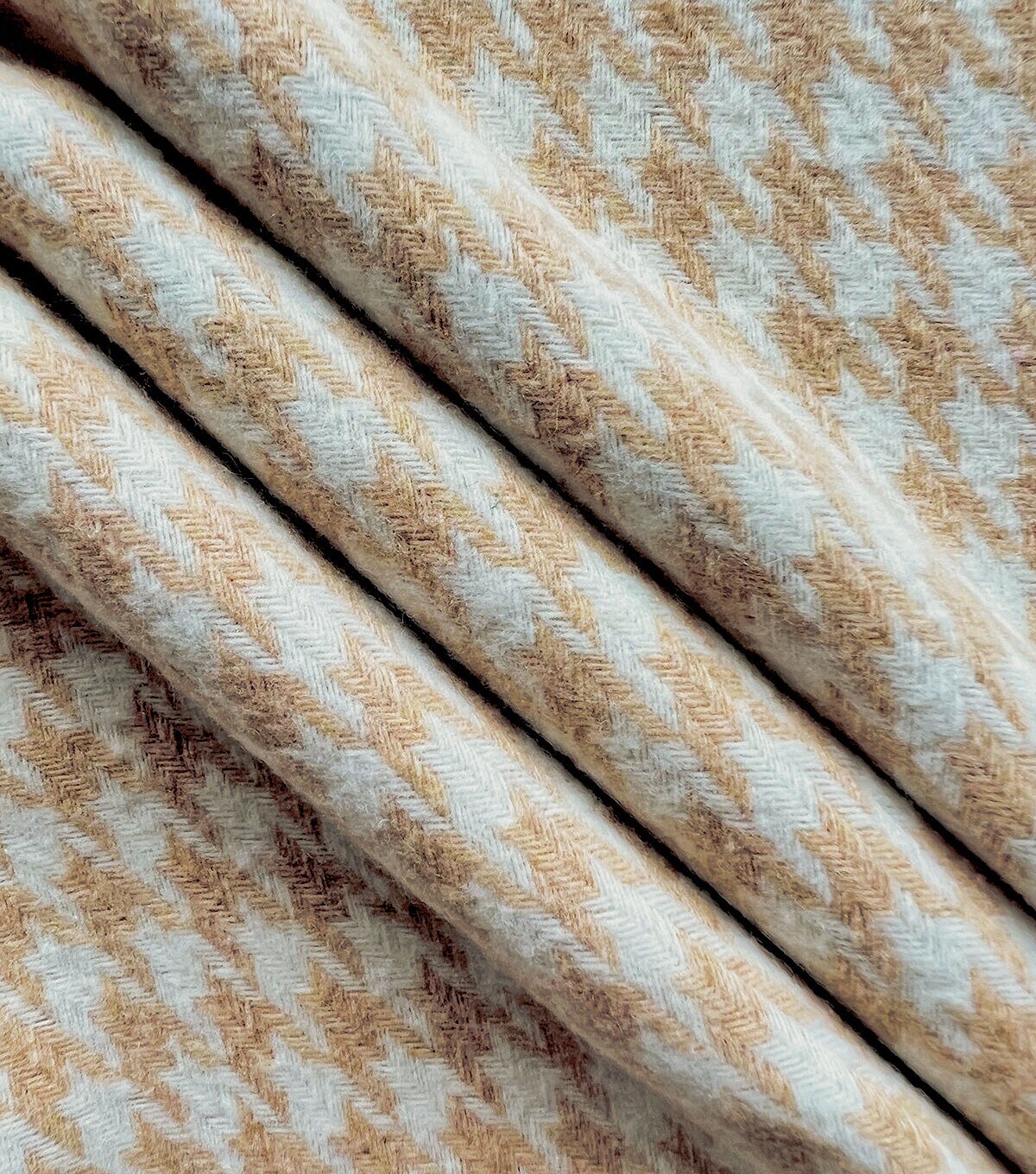 • Beige & Cream Houndstooth Tweed Fabric