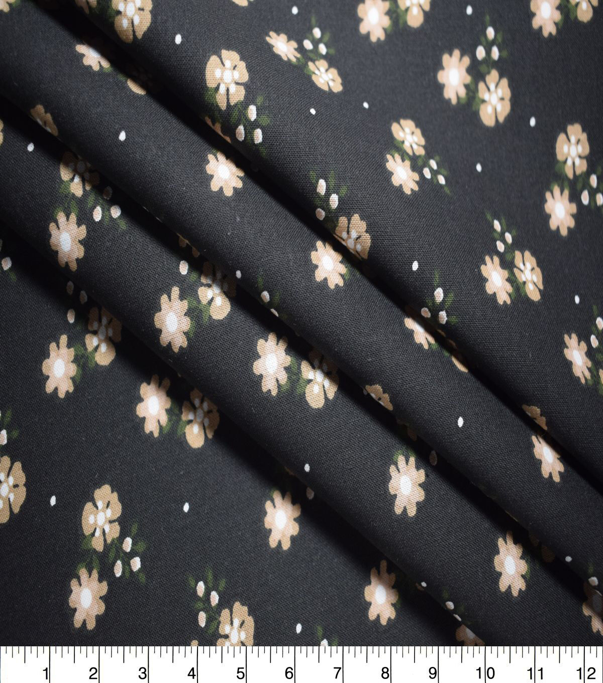 • Beige Mini Floral on Black Quilt Cotton Fabric by Quilter's Showcase