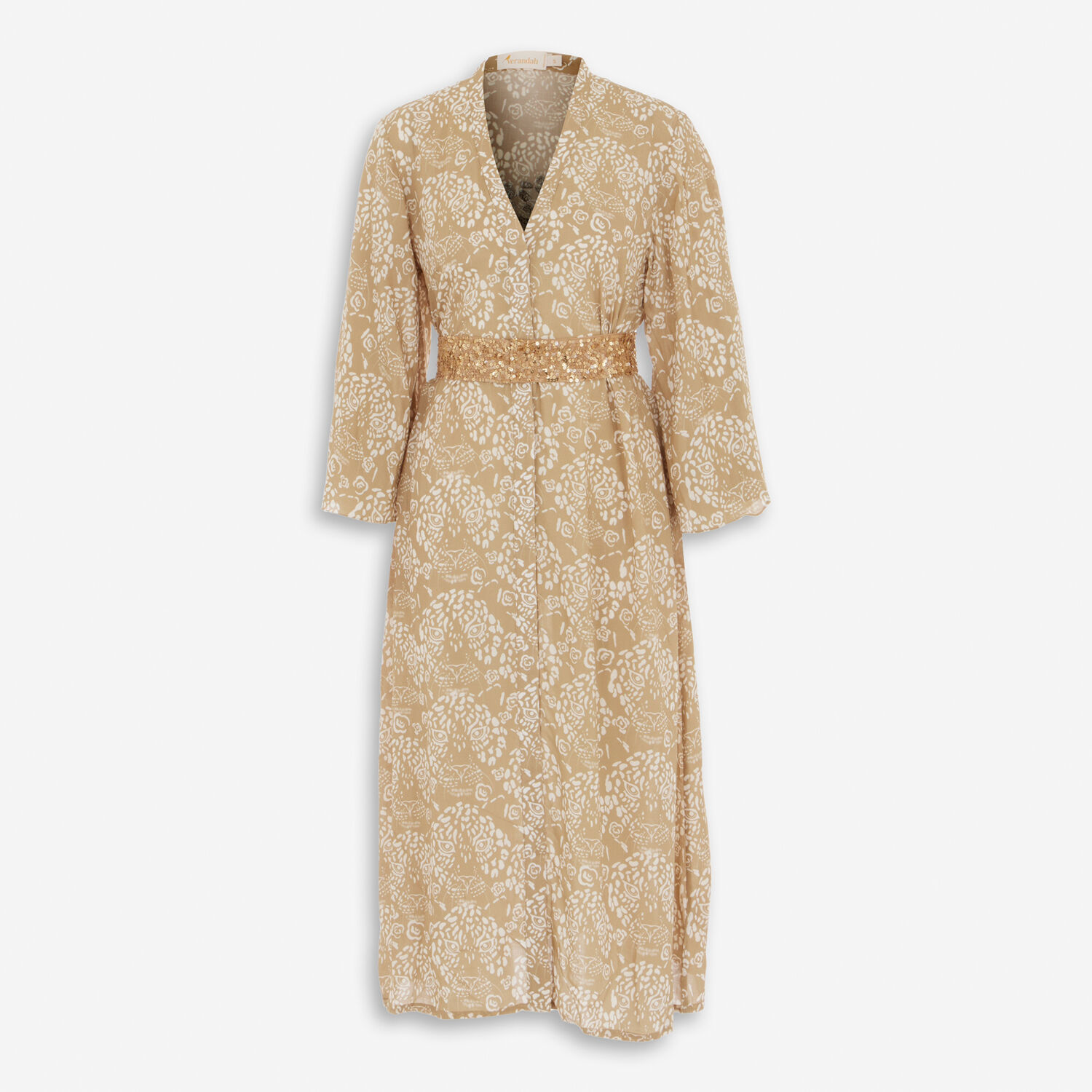 • Beige & White Patterned Dress