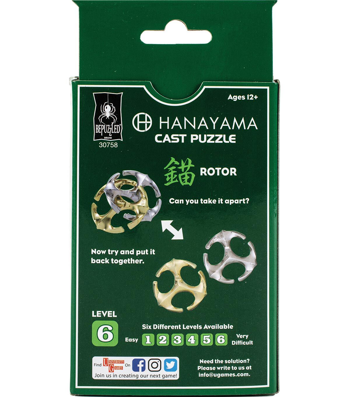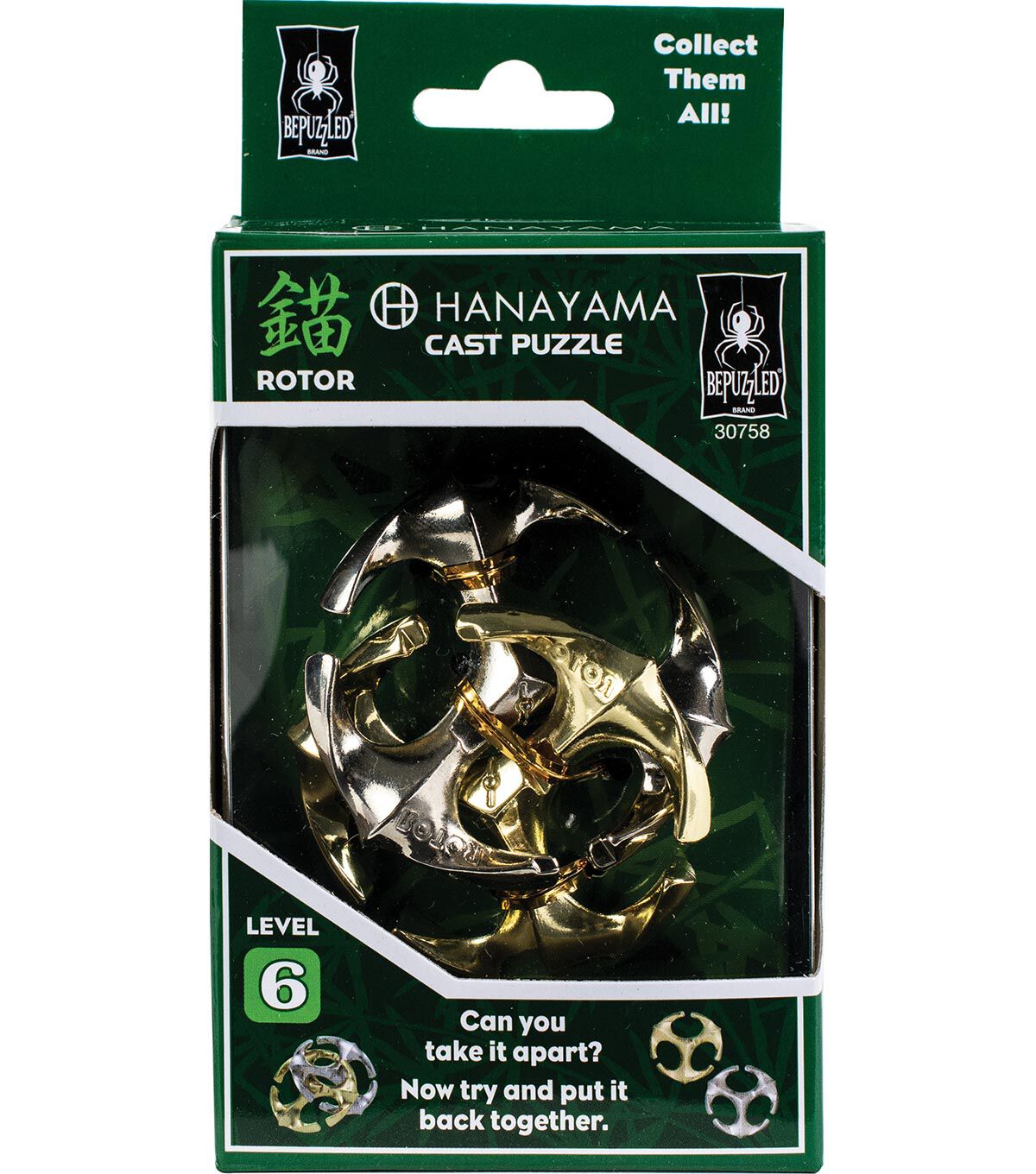 Hanayama cast puzzles are the world's finest brain teasers. These high-quality, cast metal puzzles come in six challenging, Mensa-rated levels of difficulty. This 3x4.5x1.75 inch package contains one puzzle. Comes in a variety of designs. Each sold separately. Imported.
