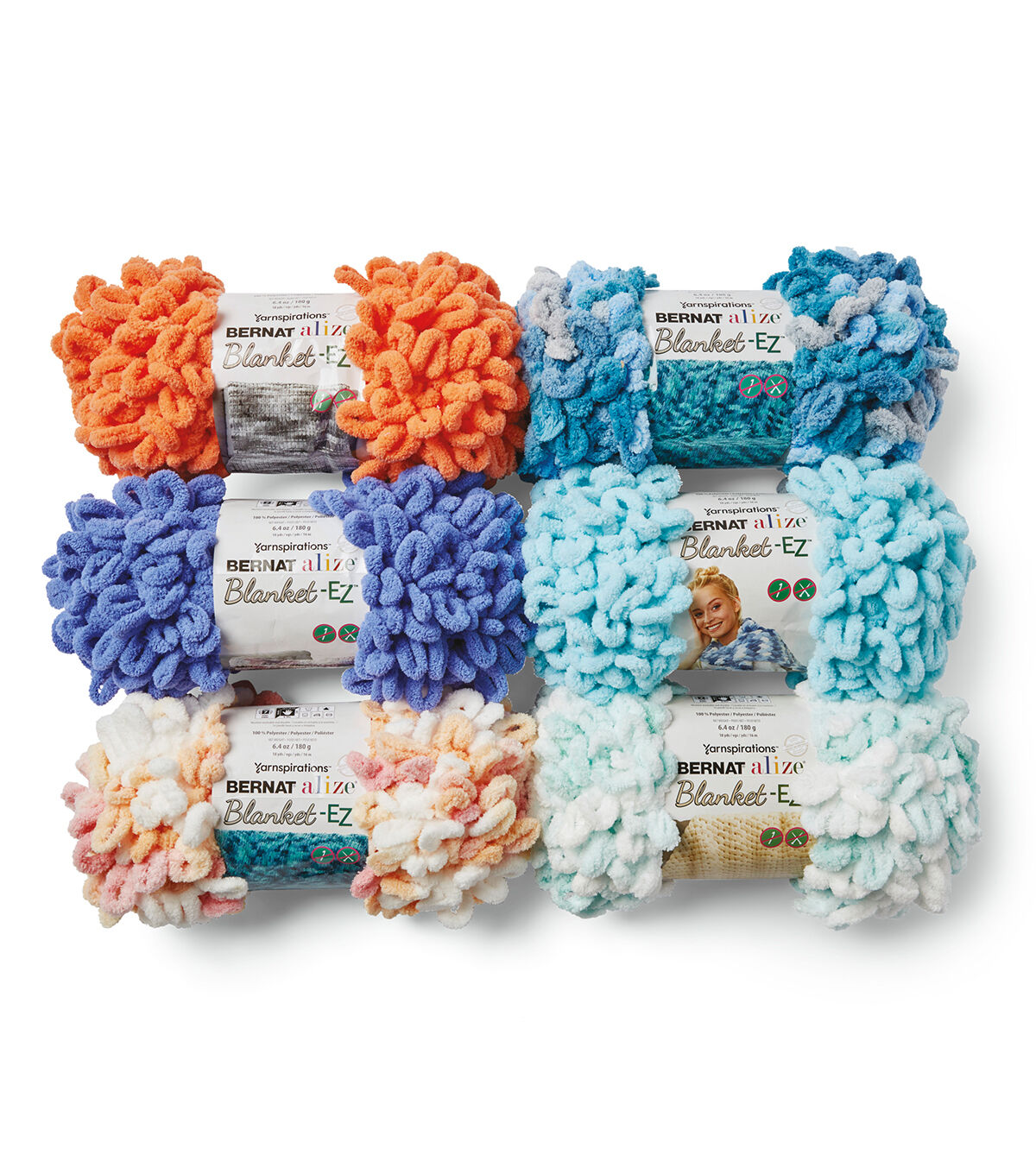 Time to get crafty with Bernat Alize Blanket-EZ! This yarn features unique preformed loops. With no needles or hooks required, Blanket-EZ projects are completed faster and easier than traditional knitting. EZ Knitting handles the first step of stitching for you so that your projects are stunning and are completed in a fraction of the time that knitting with needles take. The ultra-soft, microfiber, chenille is perfect for blankets, pillows, and even cowls! Anyone can master EZ knitting. Everyone can get the immediate satisfaction of quality handmade projects, faster and easier than ever. Welcome to EZ knitting with Blanket-EZ! Check out the video to learn how to EZ knit.