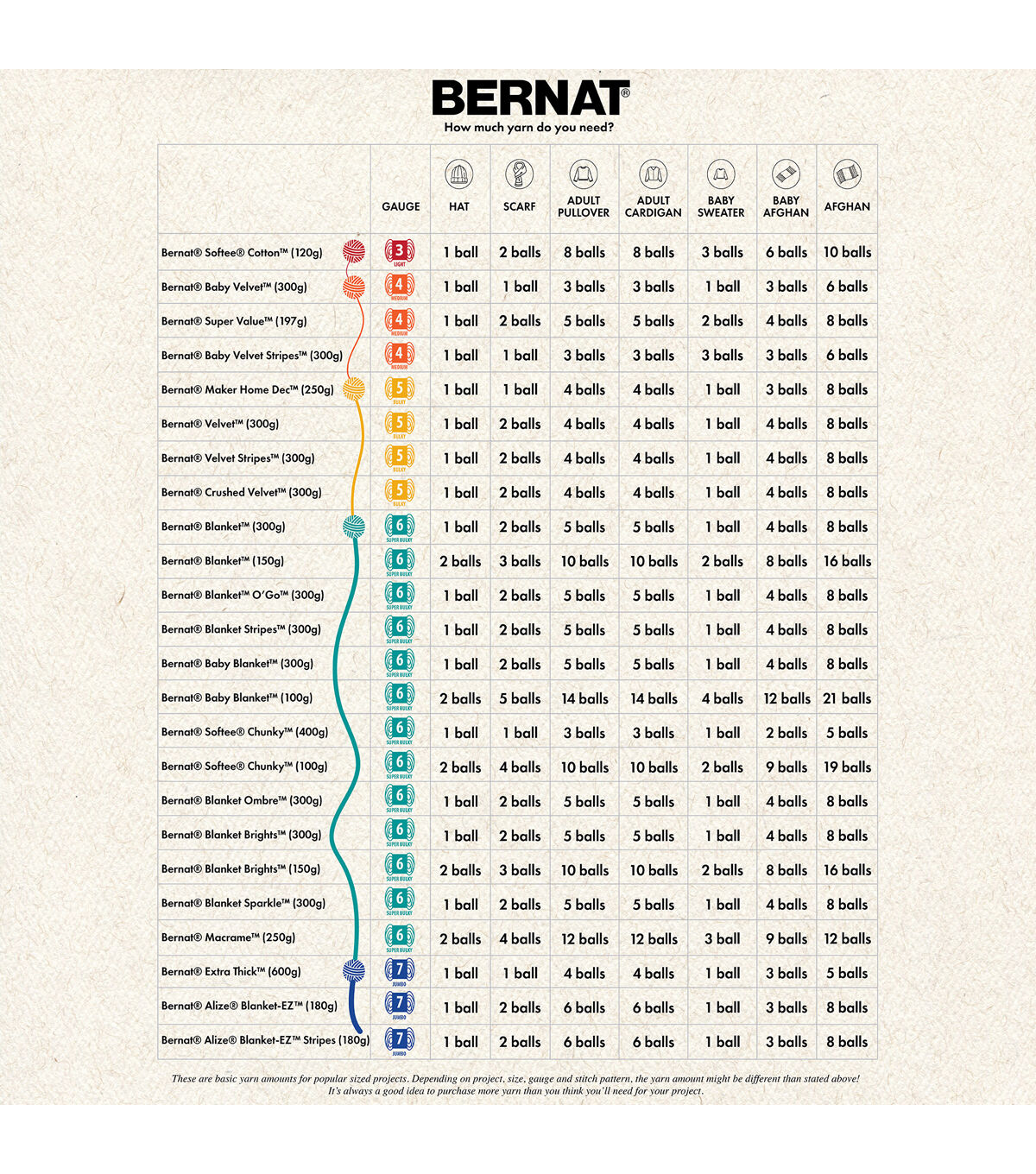 - Gauge: 6 Super Bulky