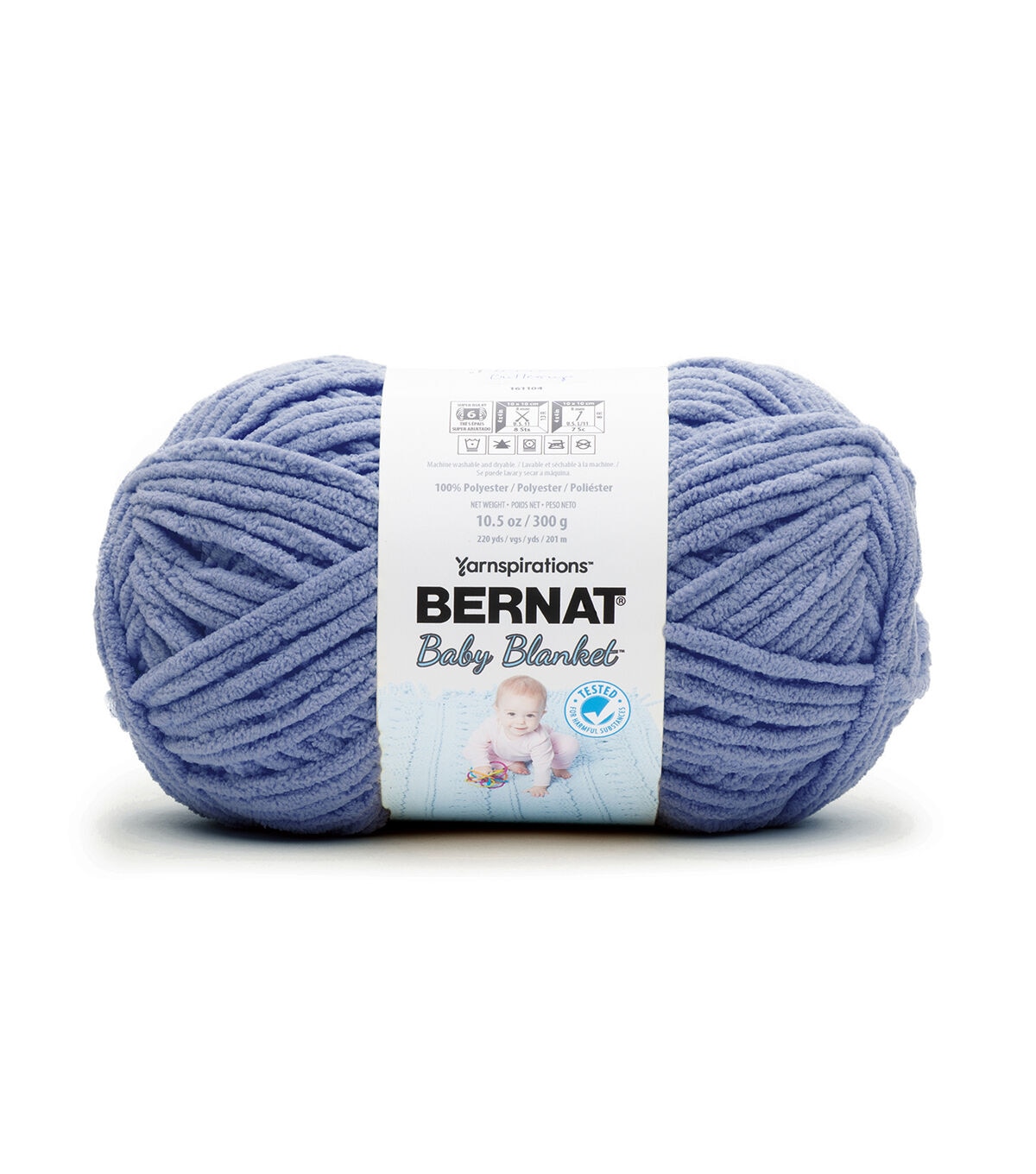 A luxuriously soft, chenille-style yarn that's perfect for baby blankets and garments. This machine washable and dryable yarn is the perfect versatile yarn for Baby. The big gauge makes projects fly by. Bernat Baby yarns are OEKO-TEX certified, and are tested for over 300 harmful substances and proven to be safe for your baby's sensitive skin. Make a project in every shade!