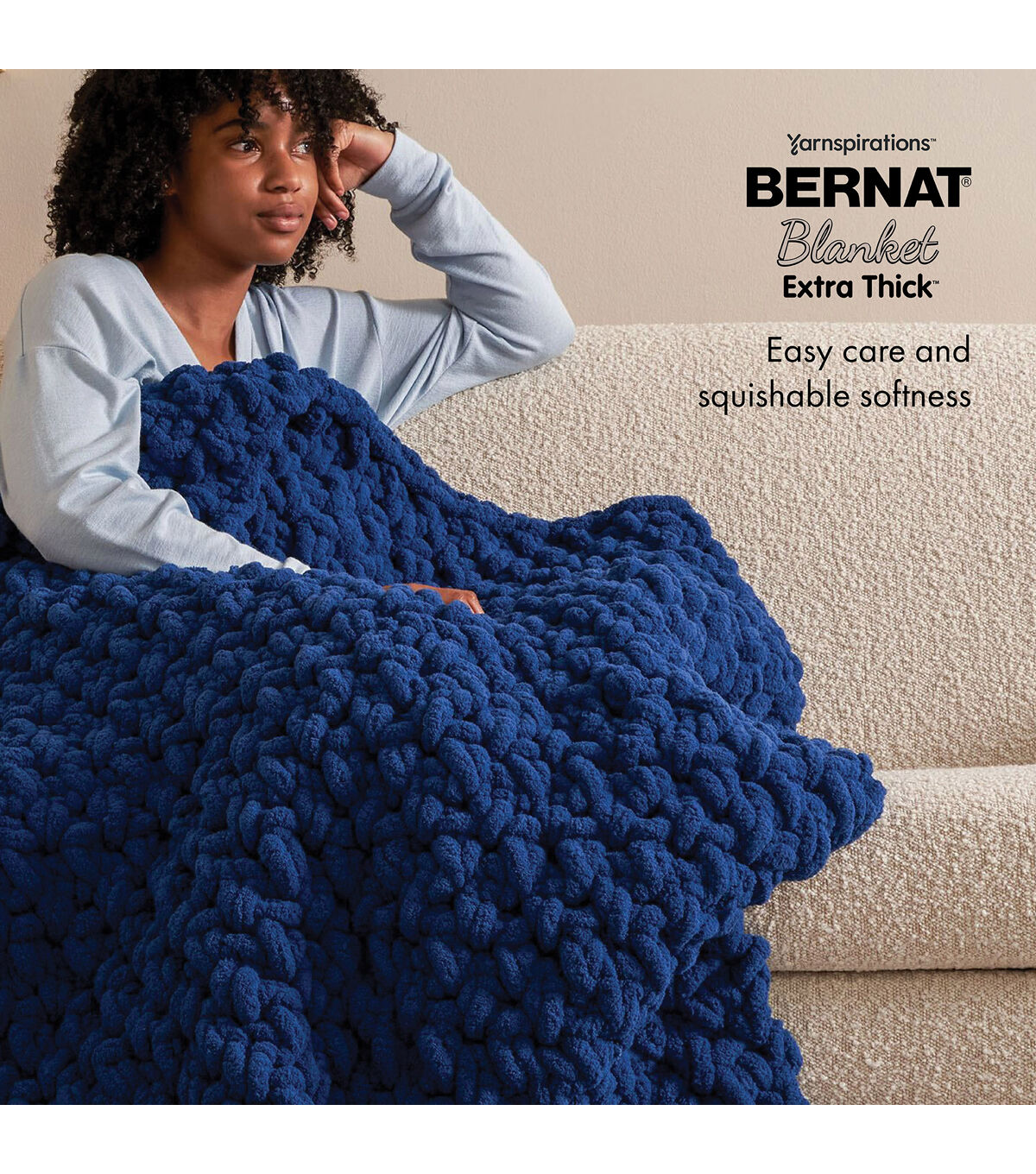 - Extra Extra! Bernat Blanket Extra Thick makes big beautiful projects in no time! Your favorite chenille-style blanket yarn in a bigger, chunkier format with the same easy care and the same squishable softness.