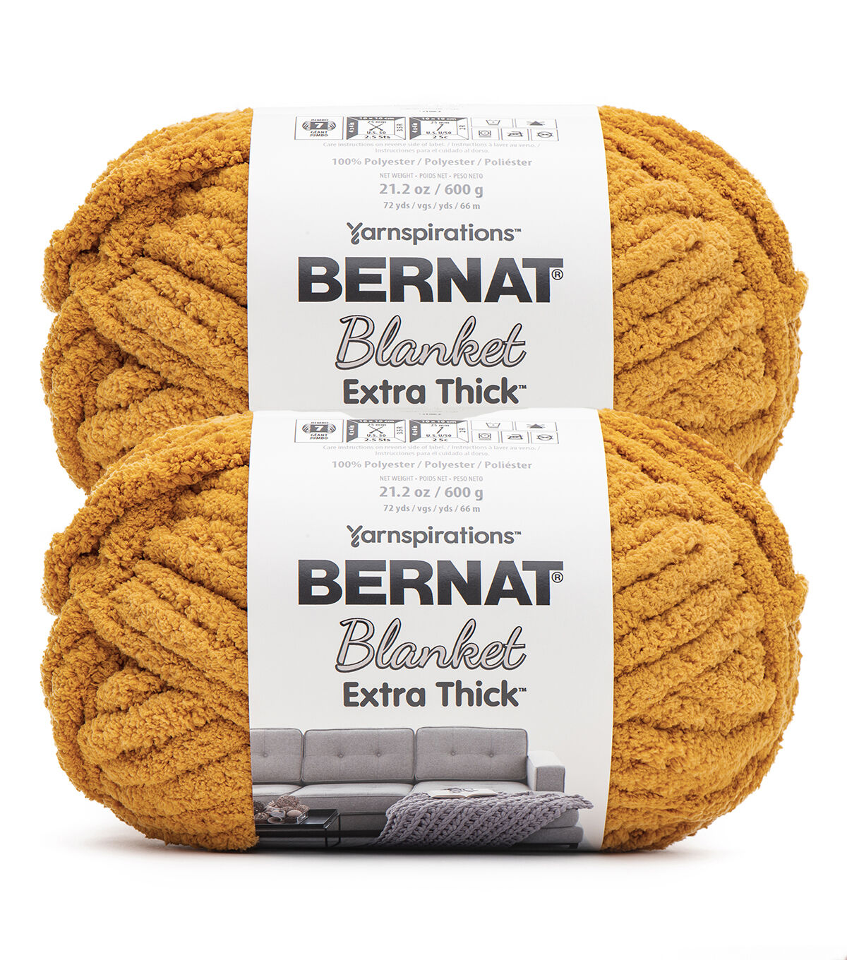 Extra Extra! Bernat Extra Thick yarn gets your project from start to finish extra fast. Your favorite chenille-style Bernat Blanket yarn now has even more to love. The jumbo weight comes in a generously sized ball so each one goes a long, long way. Use Bernat Blanket Extra Thick to stitch up washable, squishable, comfortable projects that are done before you know it.