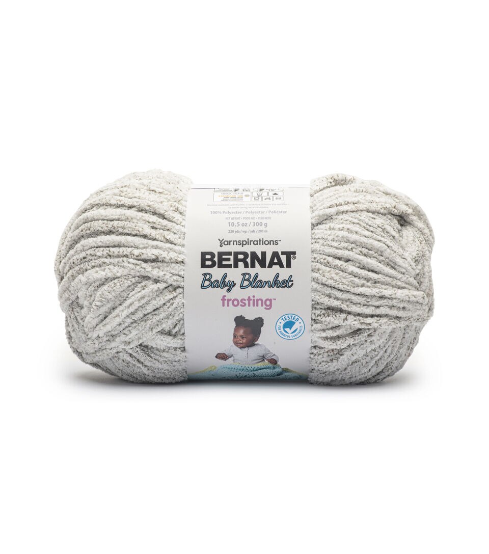 A luxuriously soft, chenille-style yarn that's perfect for baby blankets and garments. This machine washable and dryable yarn is the perfect versatile yarn for Baby. The big gauge makes projects fly by. Bernat Baby yarns are Oeko-tex certified, and are tested for over 300 harmful substances and proven to be safe for your baby's sensitive skin. Make a project in every shade!