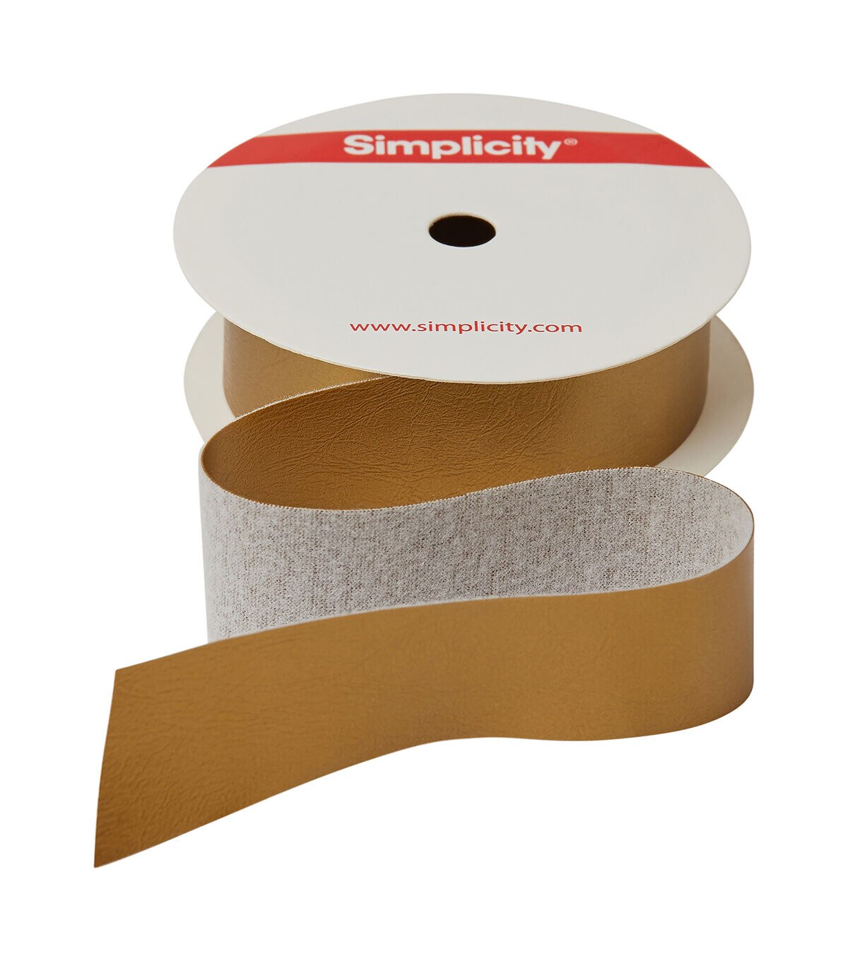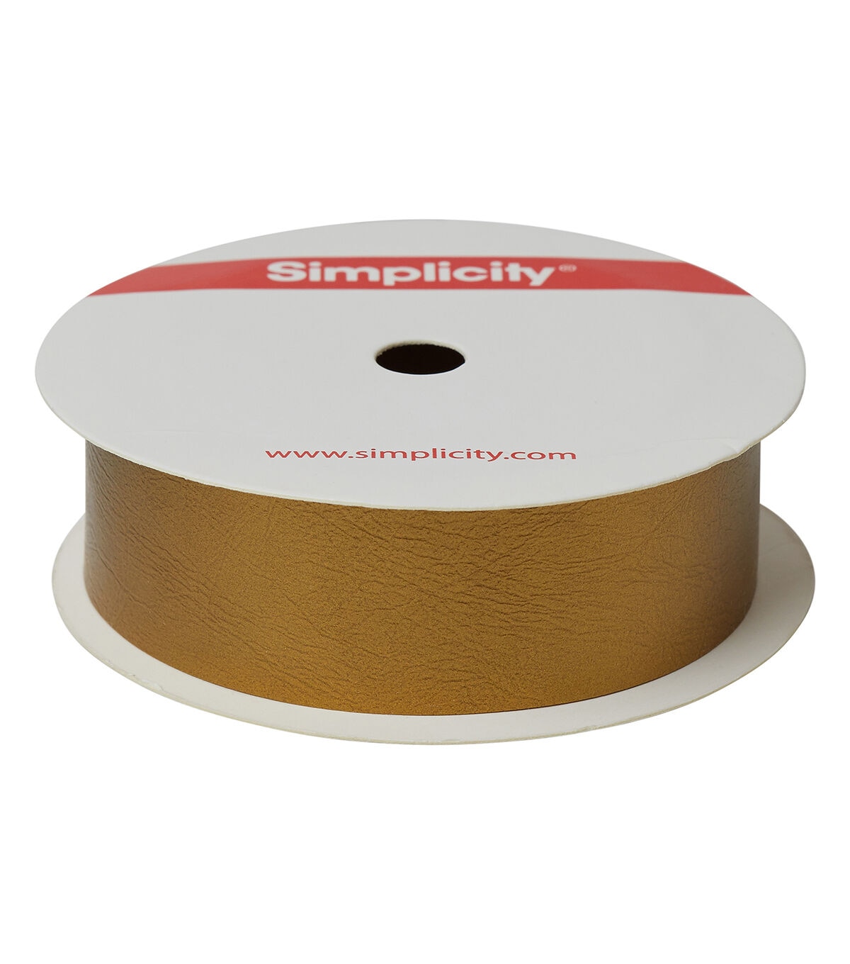 This 1 inch gold faux leather band trim is a polyurethane/polyester blend. This trim is perfect for belt making, apparel design, home décor inspirations and so much more!