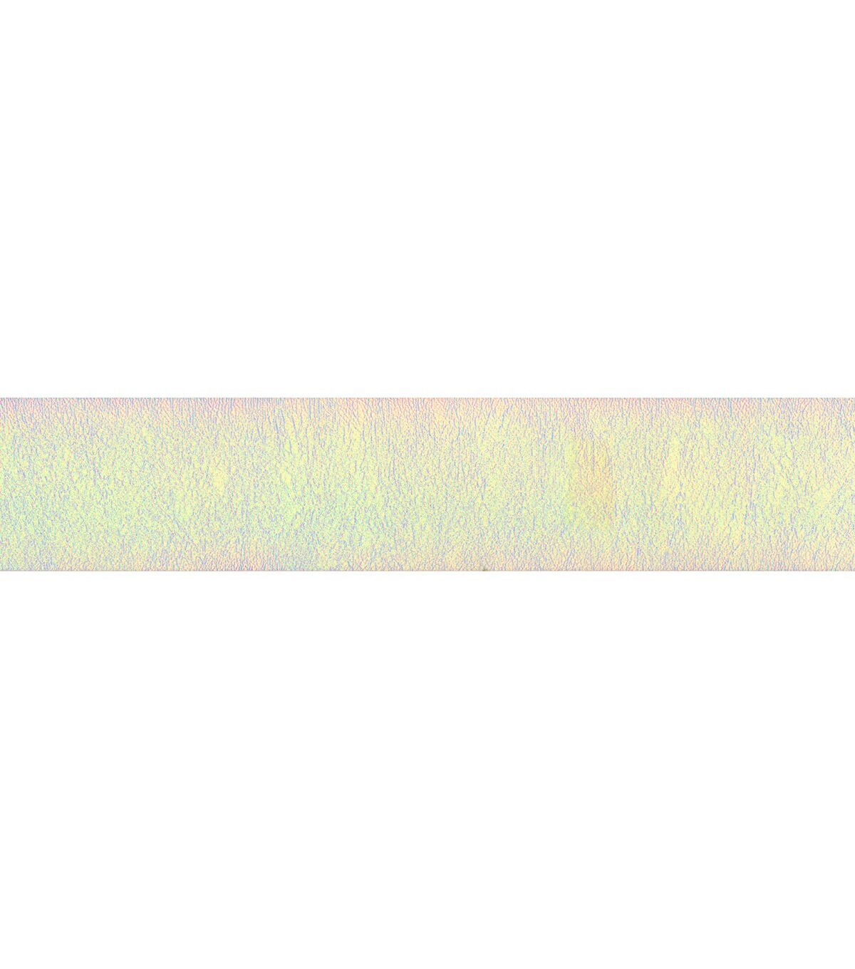 This 1 inch iridescent hologram faux leather band trim is a polyurethane/polyester blend. This trim is perfect for belt making, apparel design, home décor inspirations and so much more!