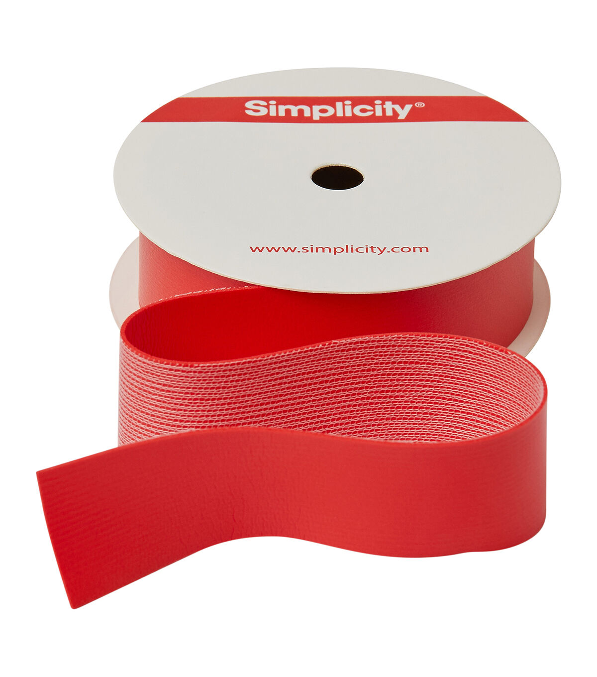 This 1 inch red faux leather band trim is a polyurethane/polyester blend. This trim is perfect for belt making, apparel design, home décor inspirations and so much more!