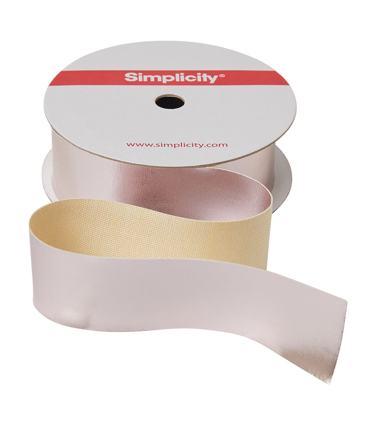 This 1 inch rose gold faux leather band trim is a polyurethane/polyester blend. This trim is perfect for belt making, apparel design, home décor inspirations and so much more!