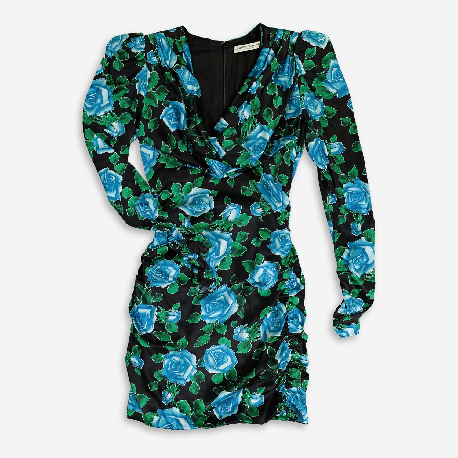 • Black & Blue Rose Draped Dress