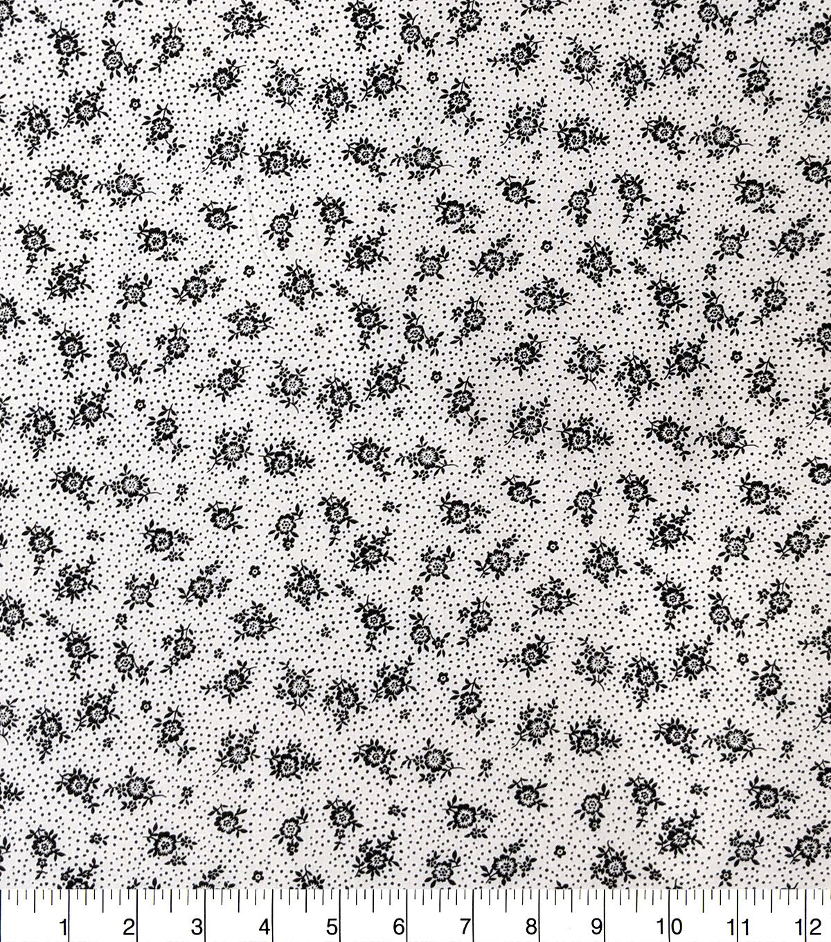 • Black Ditsy Floral on White Quilt Cotton Fabric by Keepsake Calico