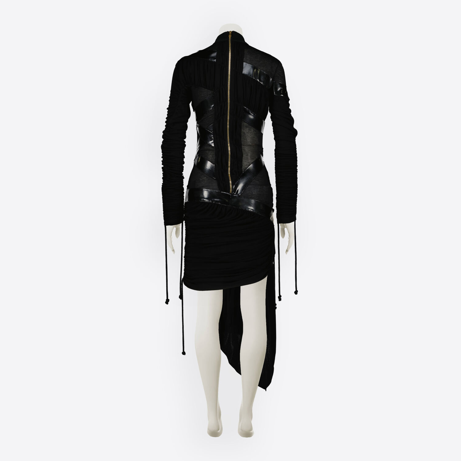 • Black Draped Shiny Bandage Midi Dress