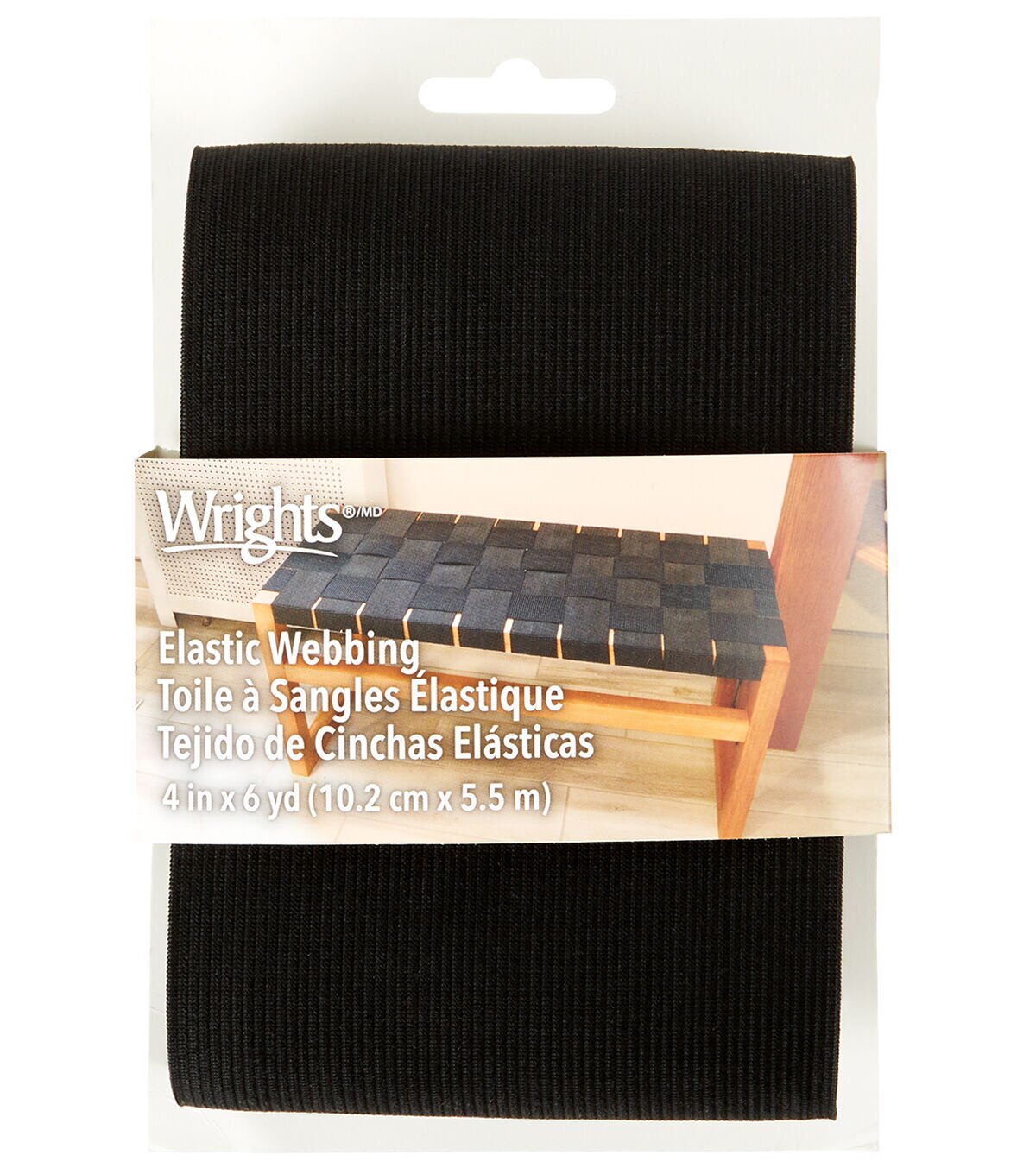 The Wrights Elastic Webbing - Black will come in handy to complete your upholstery projects. This pack contains 6 yards of elastic webbing sporting a black shade. You can also use it when making tote bags or luggage racks and basic craft projects. It is a stronger and more durable alternative to rubber webbing.