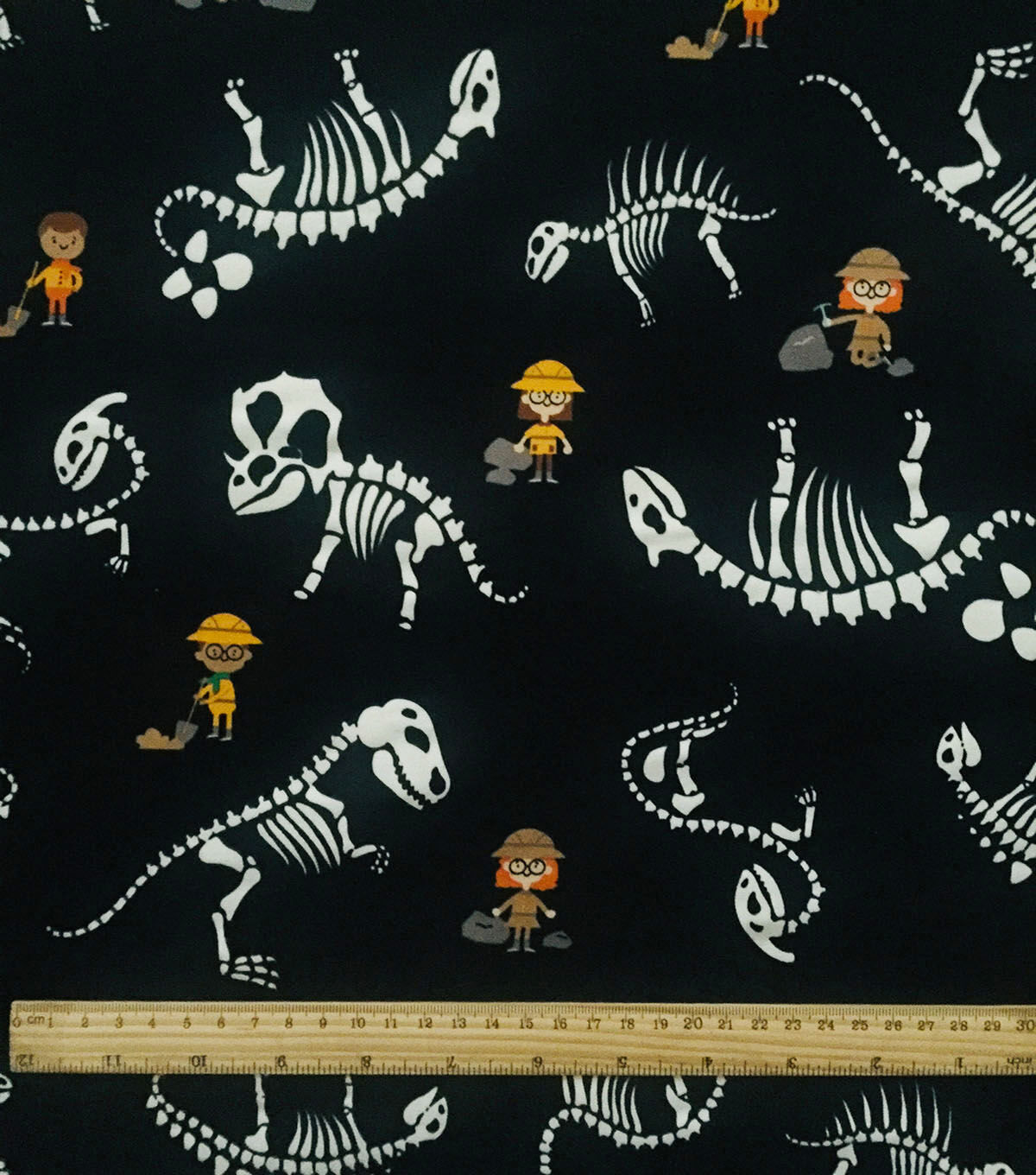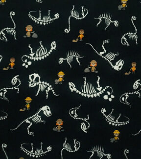 Black Glow in the Dark Digging Bones Interlock Knit Fabric by POP!