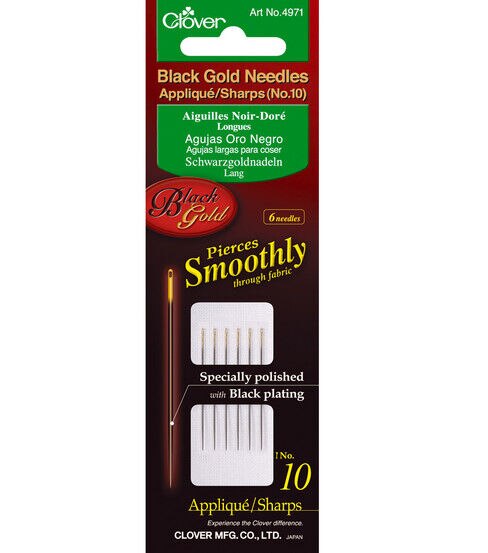 You will love to take on your next applique project when you have the Clover Applique & Sharp Needles - Black & Gold in your sewing supplies. These needles are polished along the axis for a velvety smooth surface and are designed with sharp points for effortless piercing. They are black-plated for enhanced rust resistance and do not bend or break easily. This pack contains six needles in size 10.