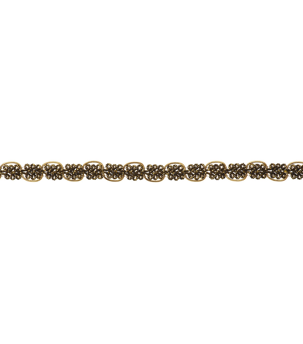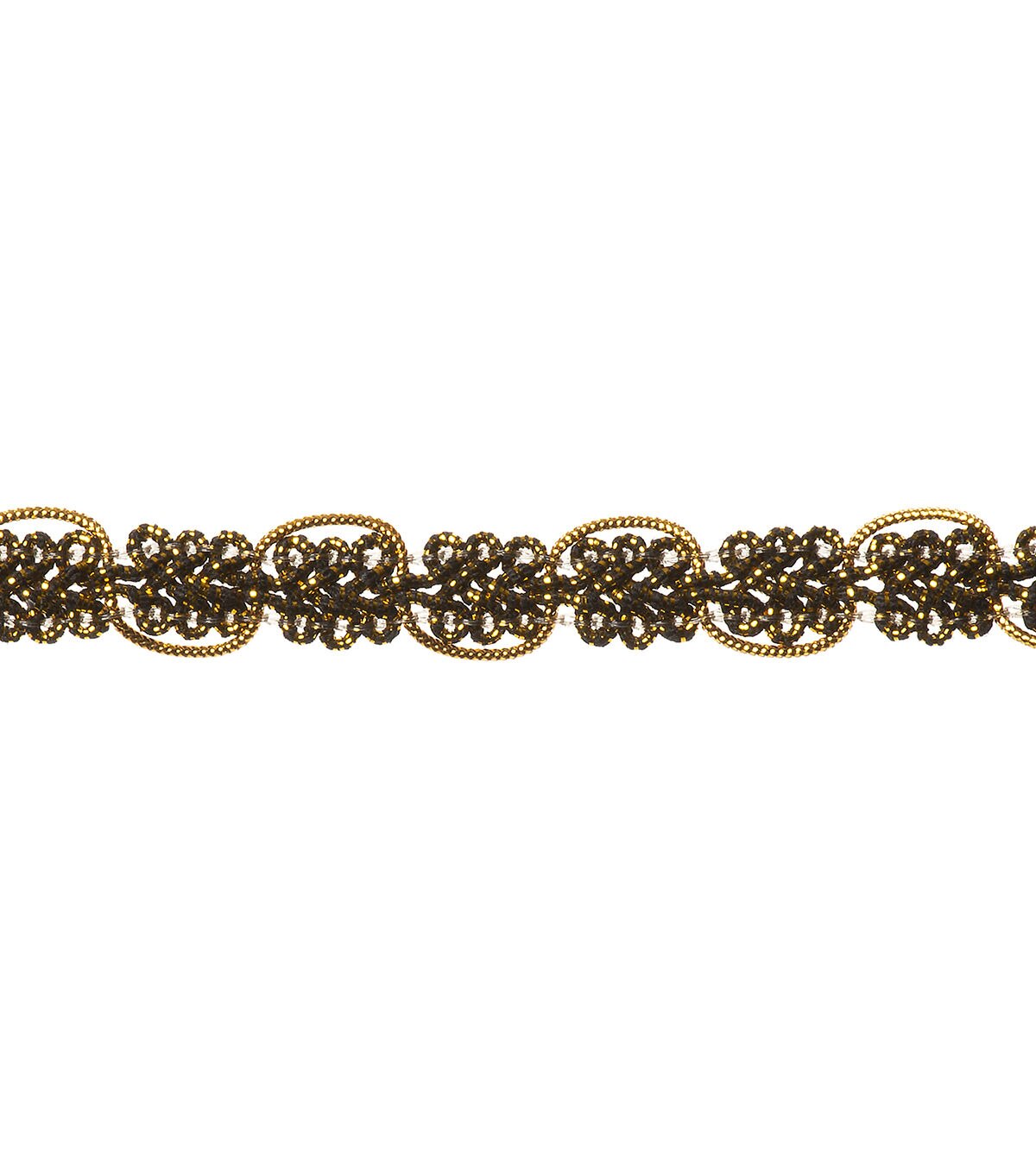 This 1/2 inch black and gold scroll trim in a cotton/polyester/nylon blend. Use this easy trim for apparel design, home décor inspirations and so much more!