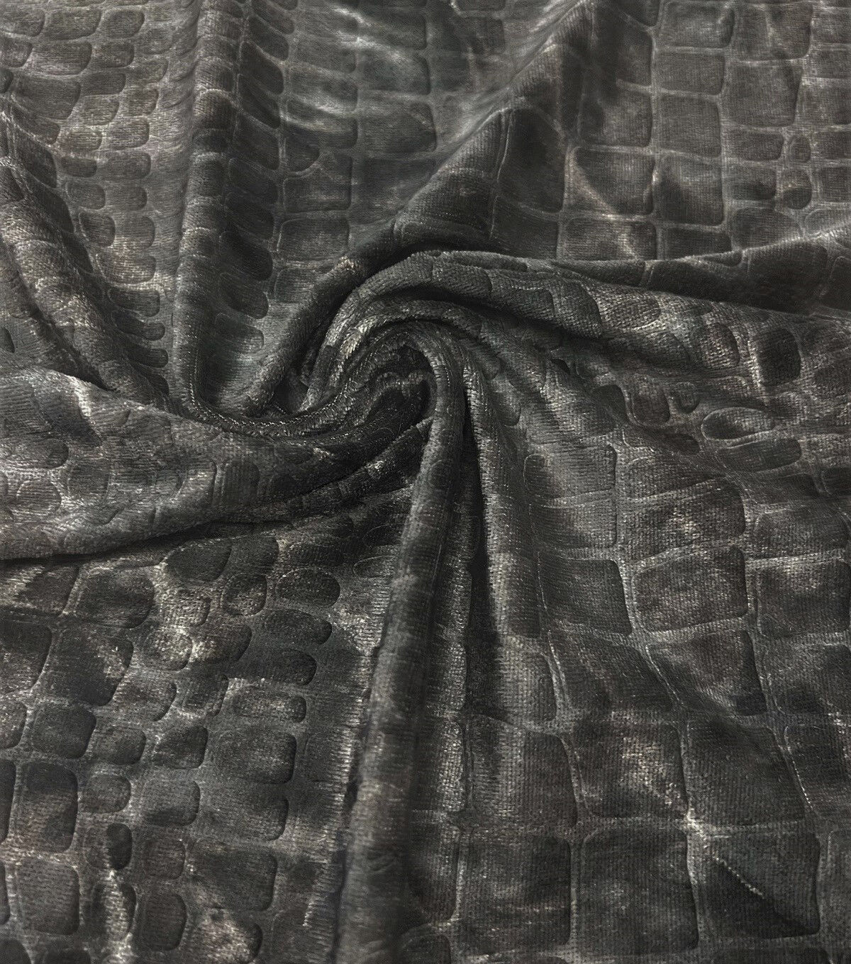 Black & Gray Embossed Tie Dye Panne Velvet Fabric by The Witching Hour