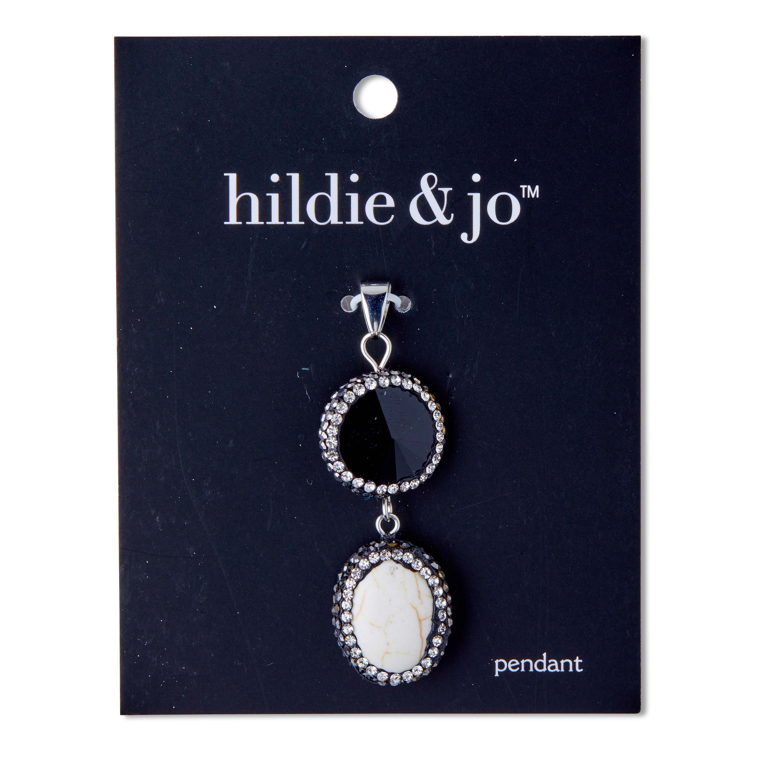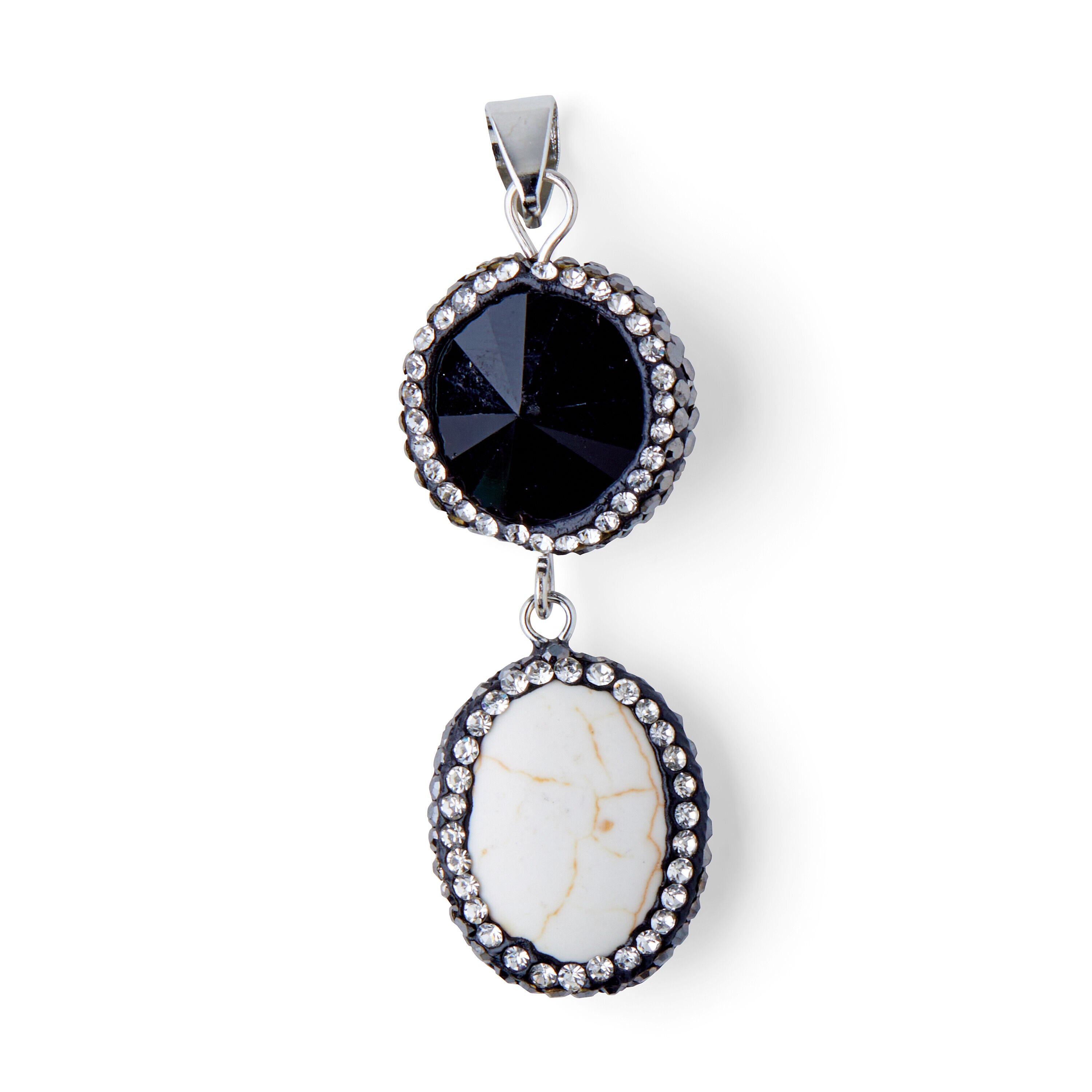 Make a style statement by wearing a necklace made using the hildie & jo Howlite Crystal Pave Pendant - Black, Silver & Ivory. It is designed with a circular accent with a black center that is attached to an oval accent flaunting an ivory-hued stone in its center. Both of these accents come adorned with white stones. You can also gift this pendant to someone who loves making jewelry.