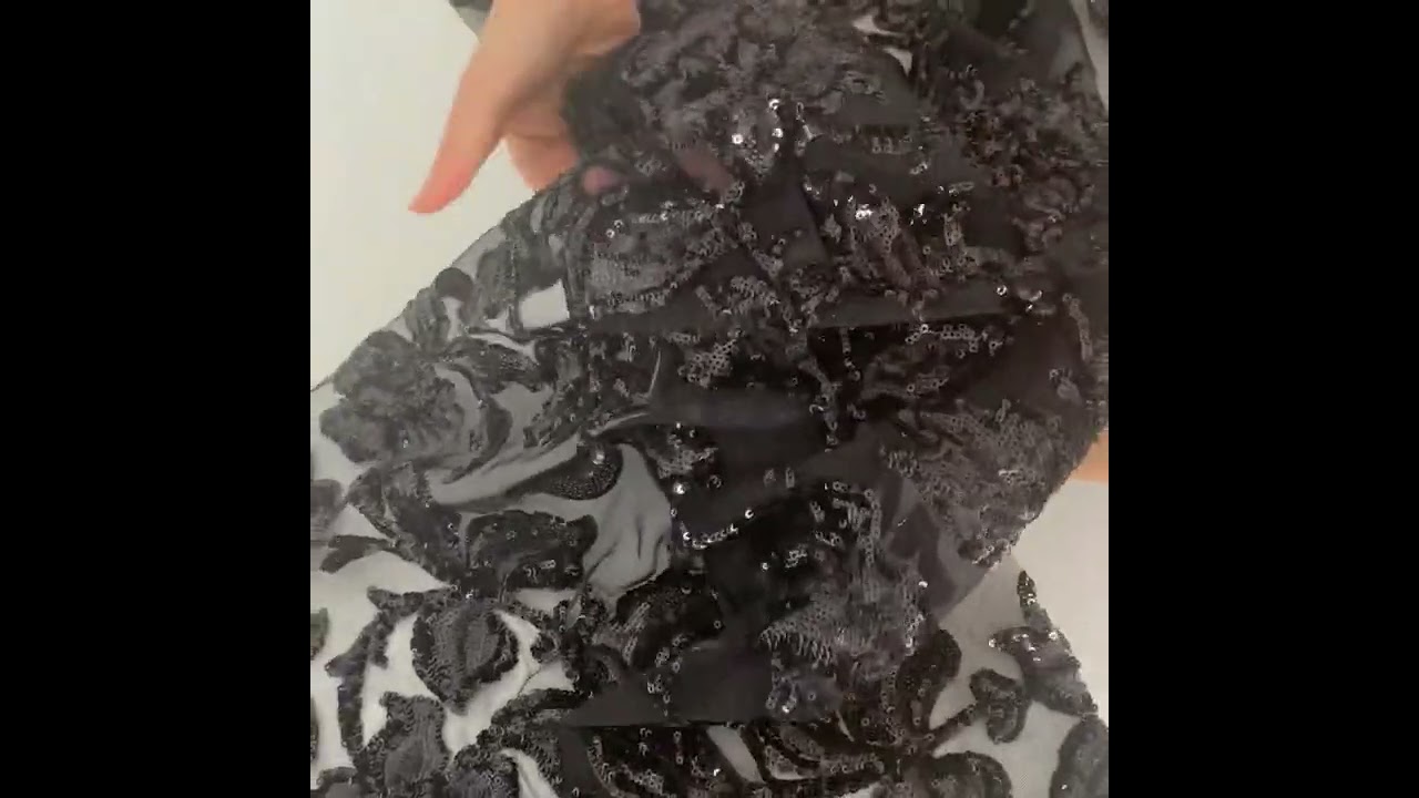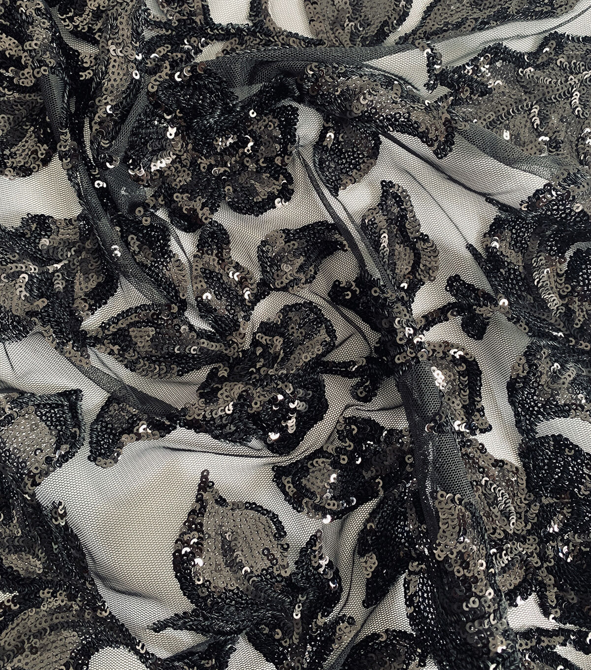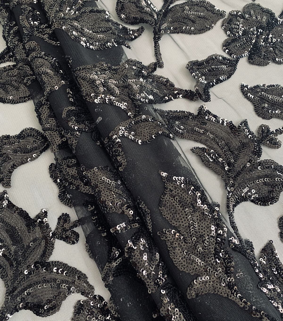 • Black Leafy Sequin Tulle Mesh Fabric