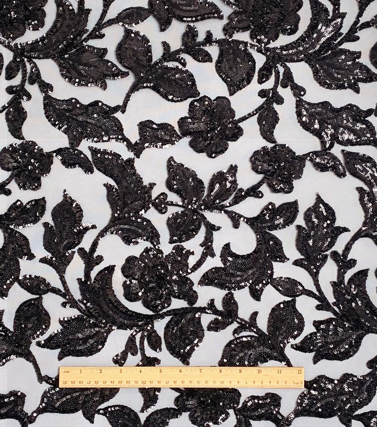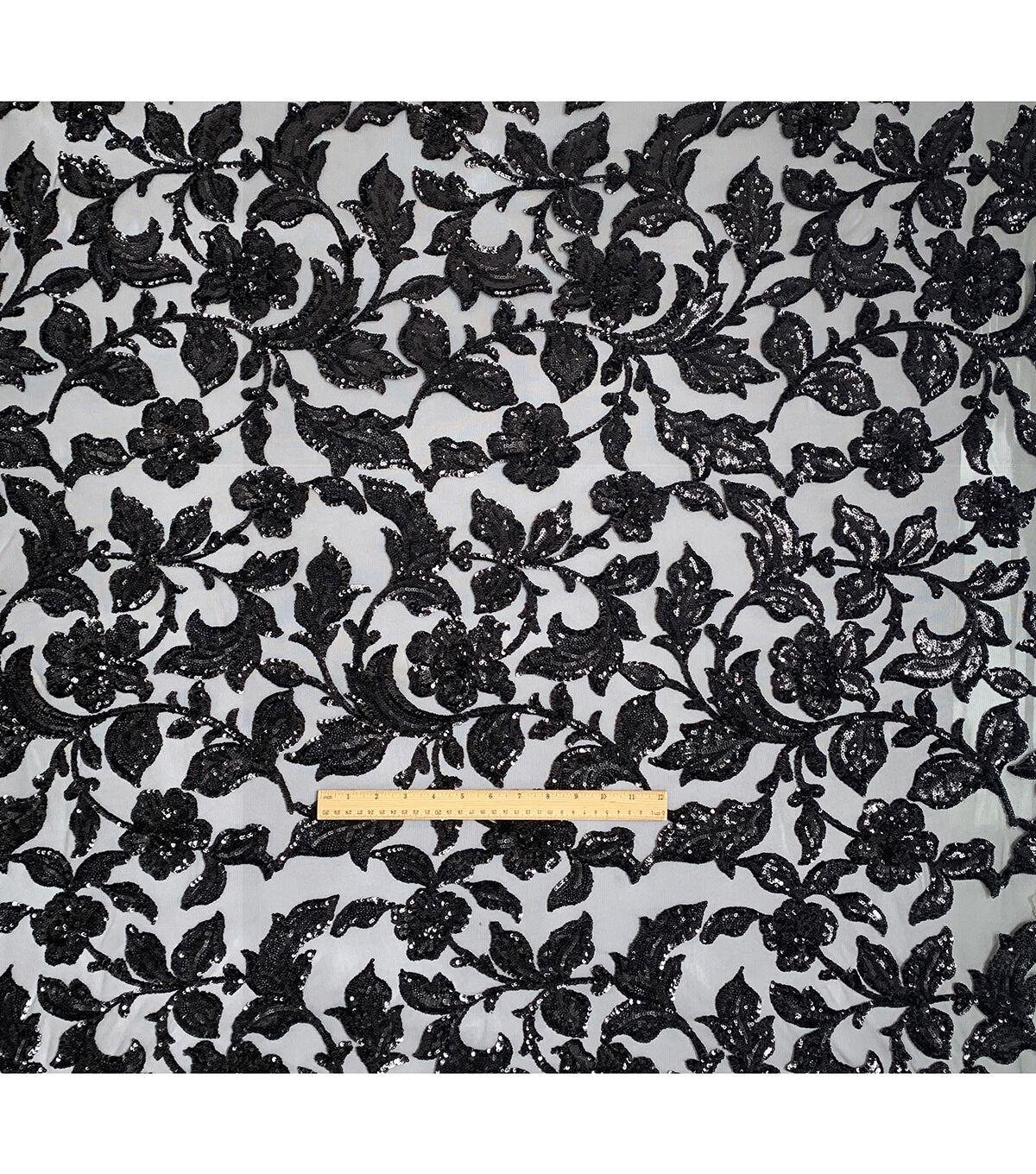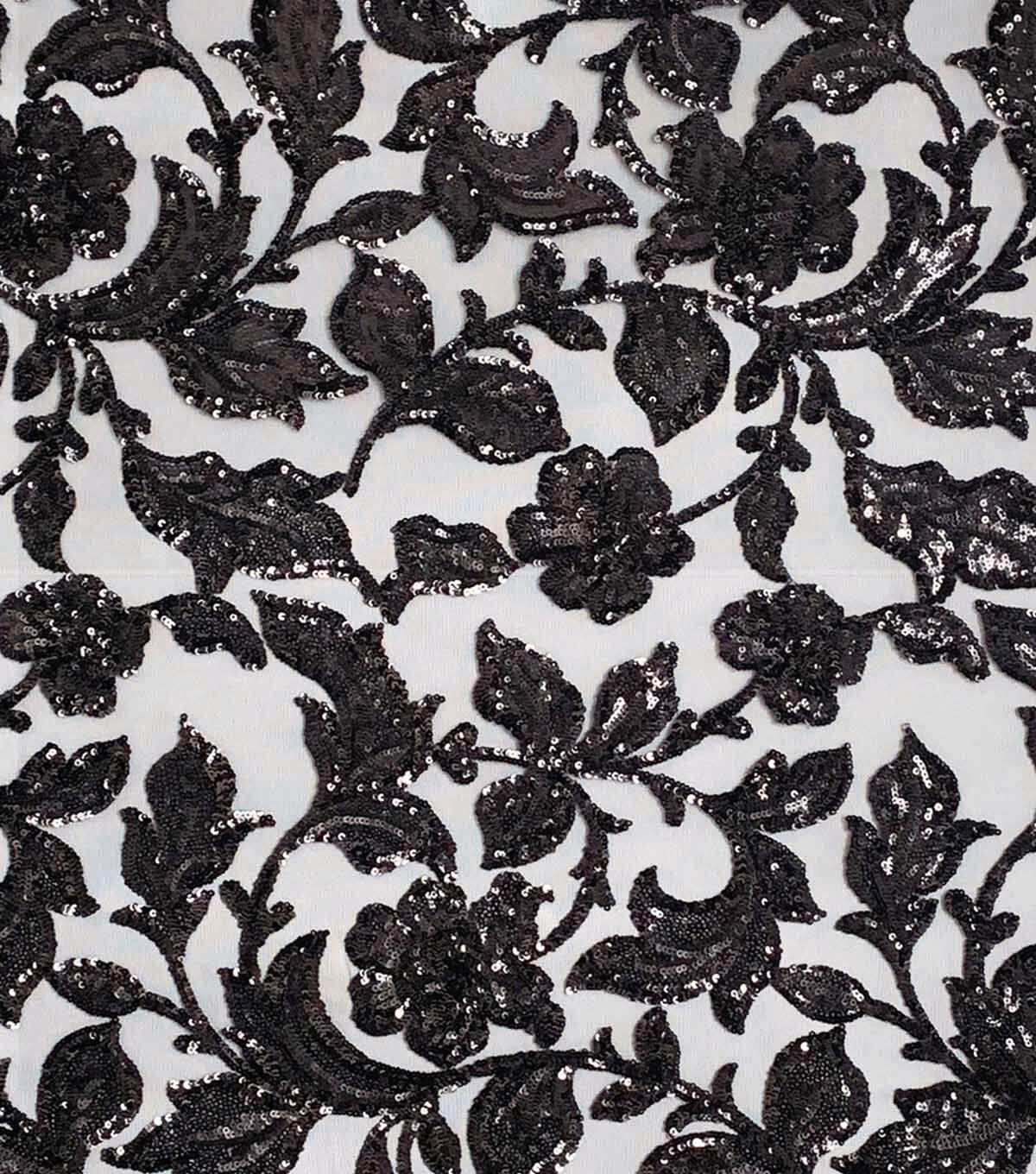 • Black Leafy Sequin Tulle Mesh Fabric