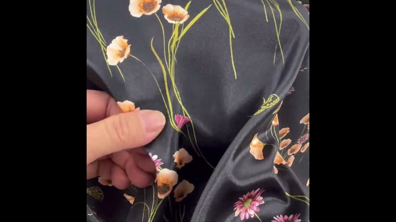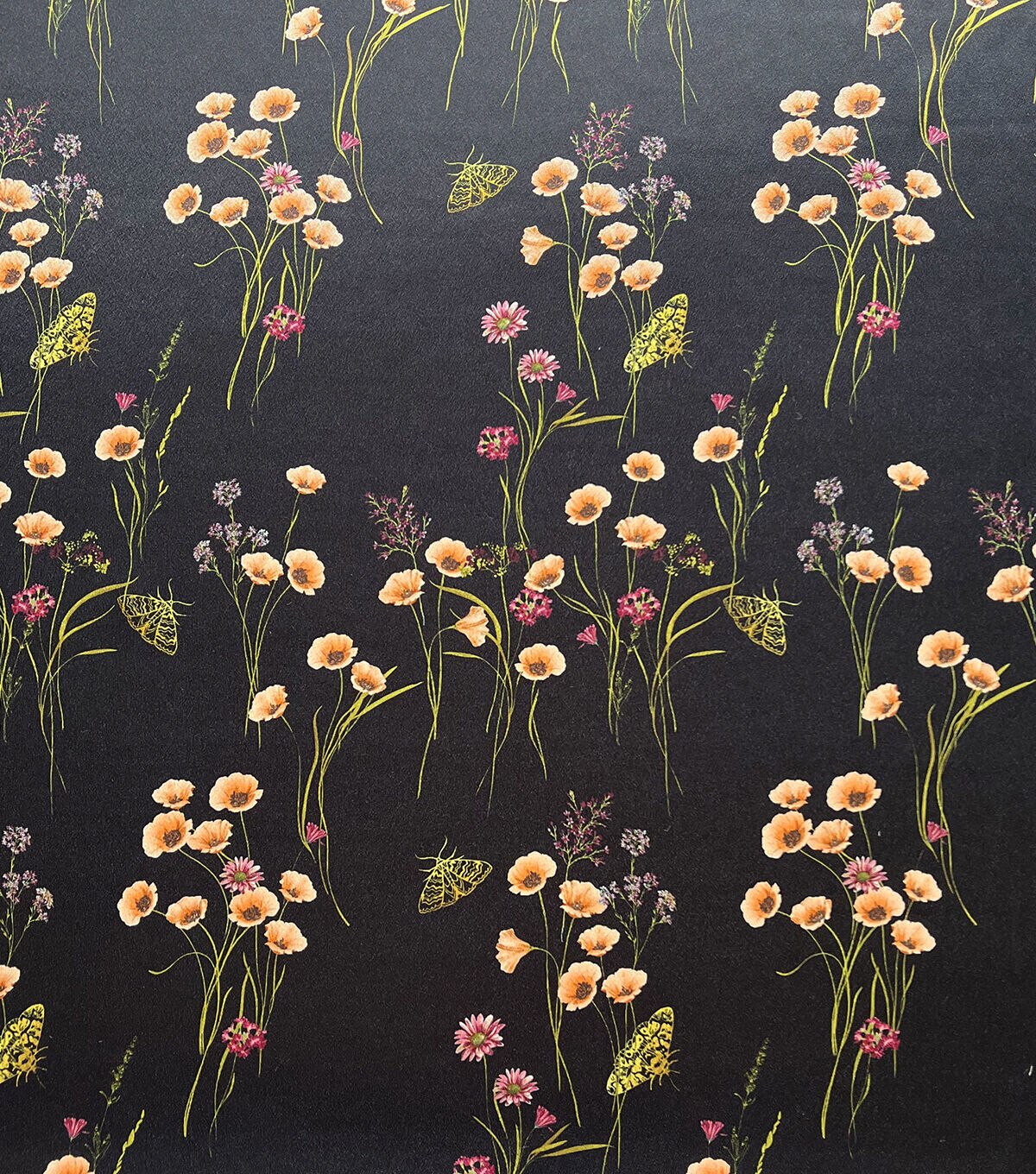 Black Moths & Stems Charmeuse Fabric