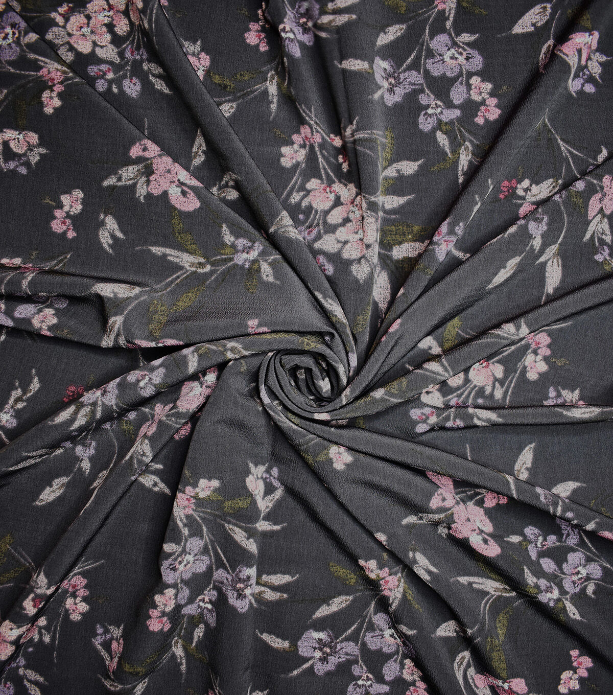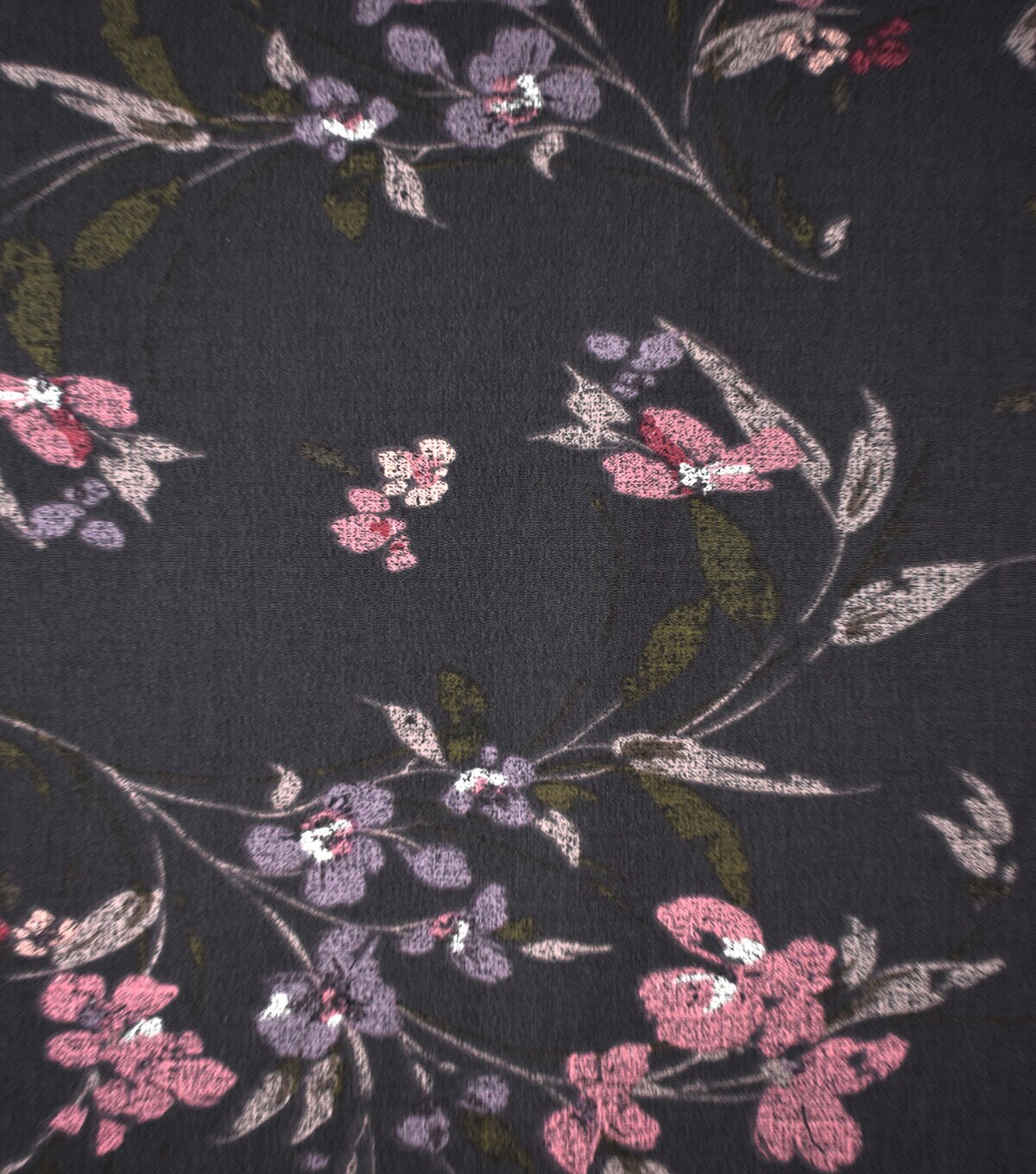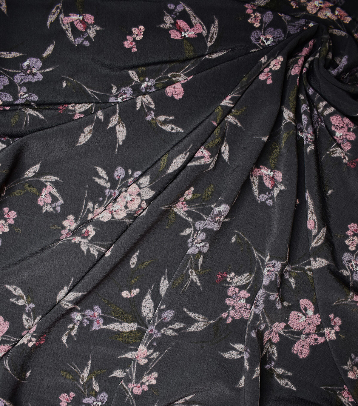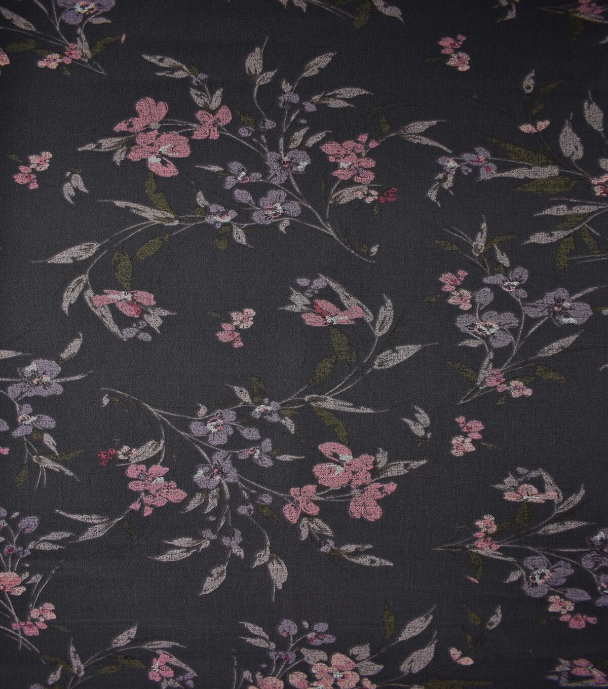 Black Muted Multi Floral Stems Textured Silky Prints Fashion Fabric