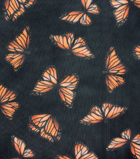 • Black & Orange Butterfly Mesh Fabric