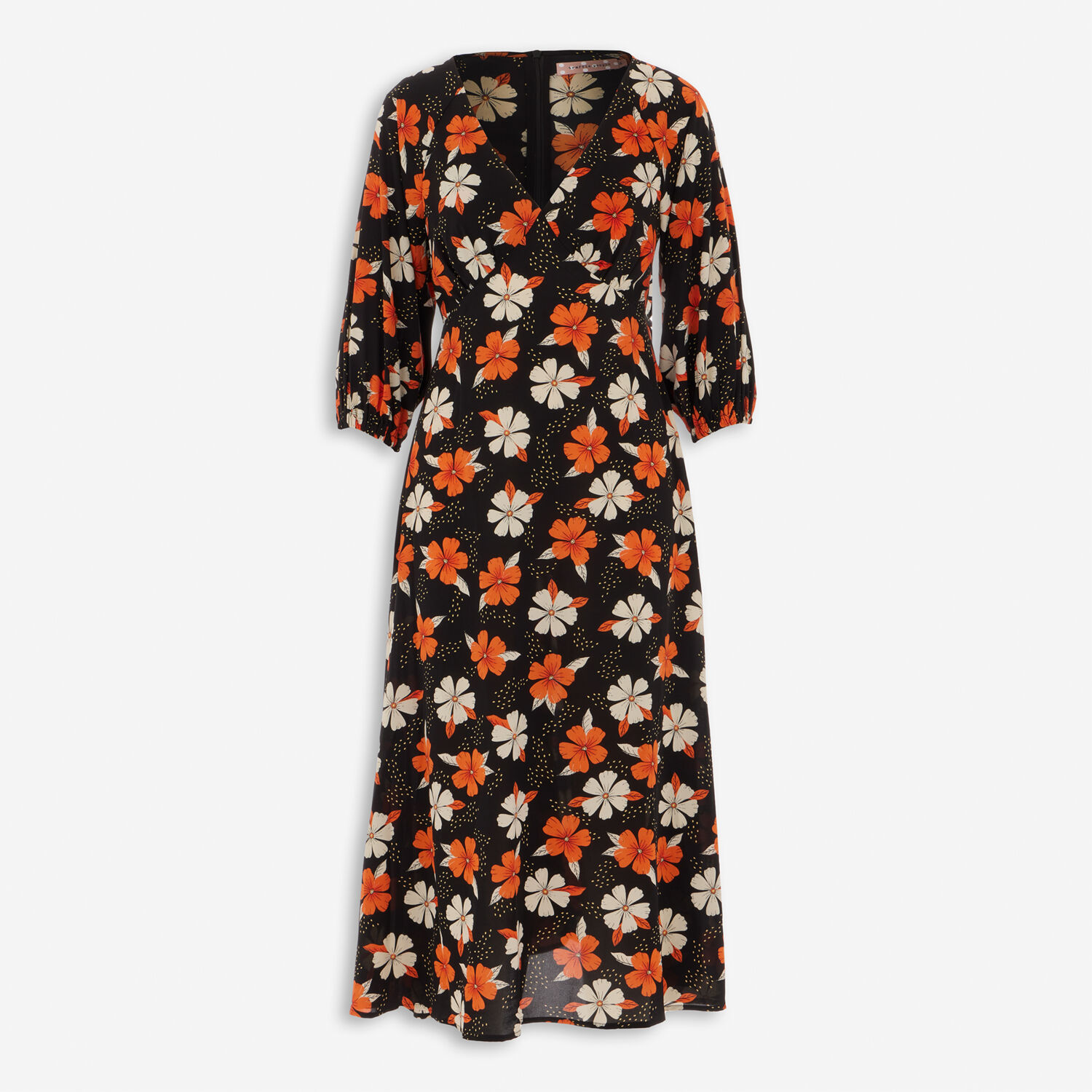 • Black & Orange Floral Patterned Dress
