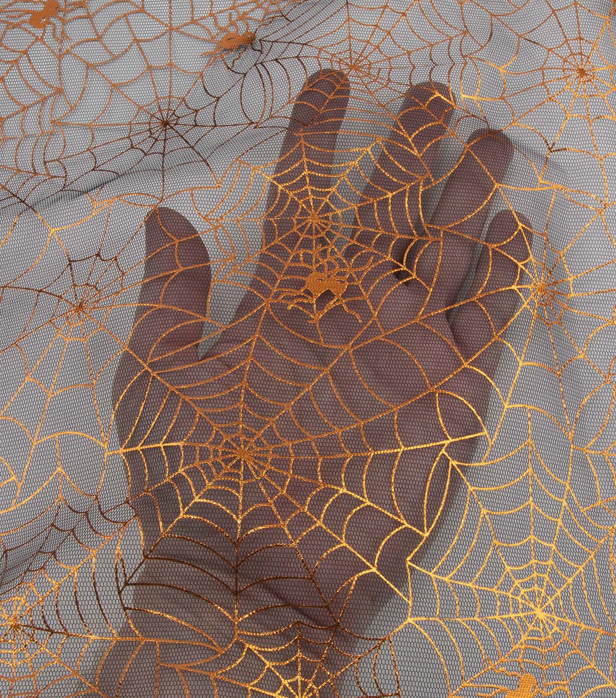 • Black & Orange Two Tone Metallic Web Mesh Fabric by The Witching Hour